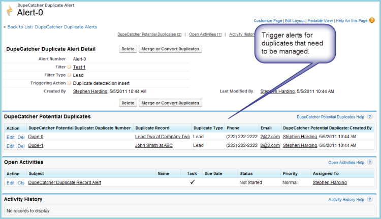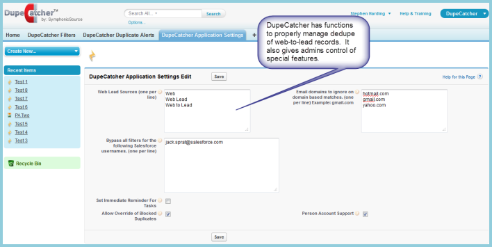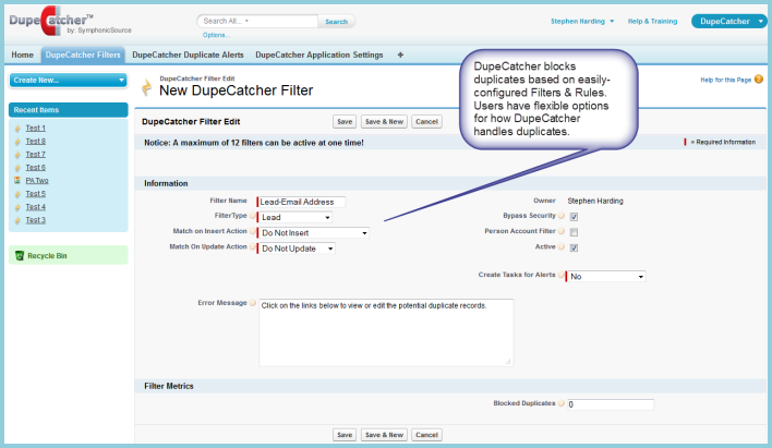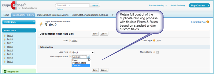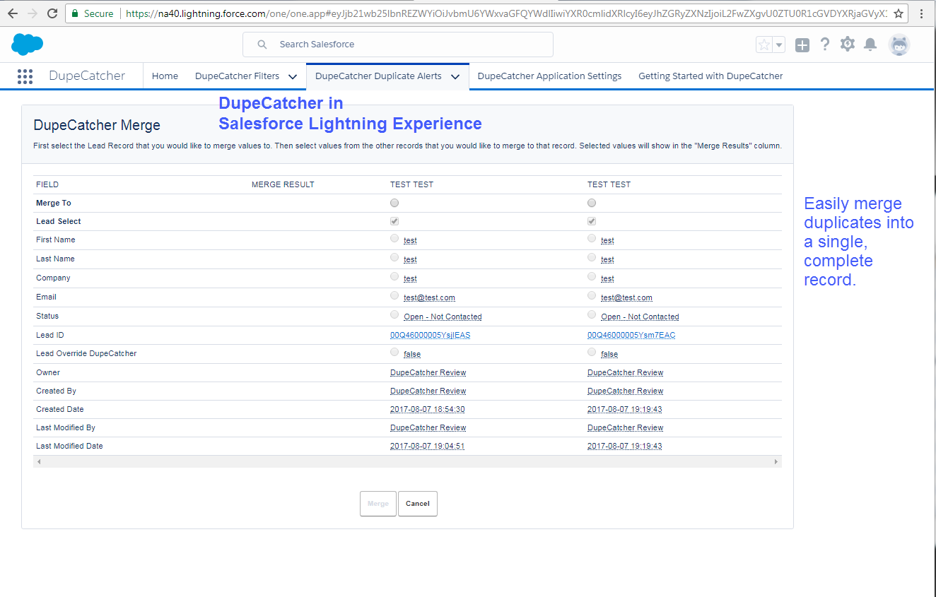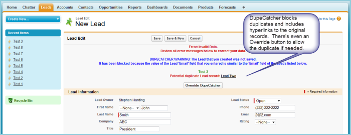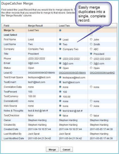 Data CleansingDupeCatcher enables users to identify, block and dedupe leads, accounts, contacts, and person accounts in real-time at the point-of-entry. Retain full control of the identification and merging process, eliminating fear of loss while cleaning data.