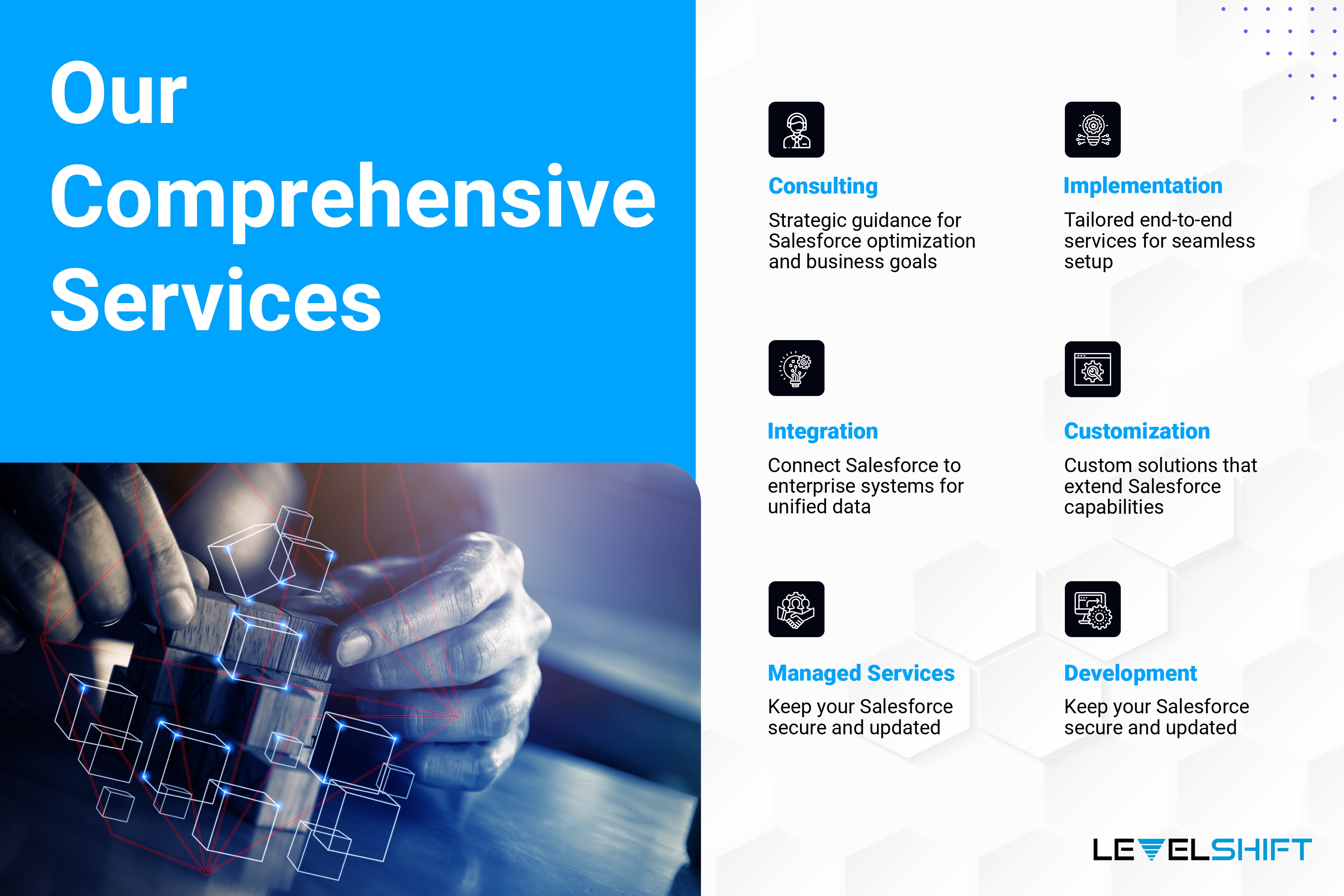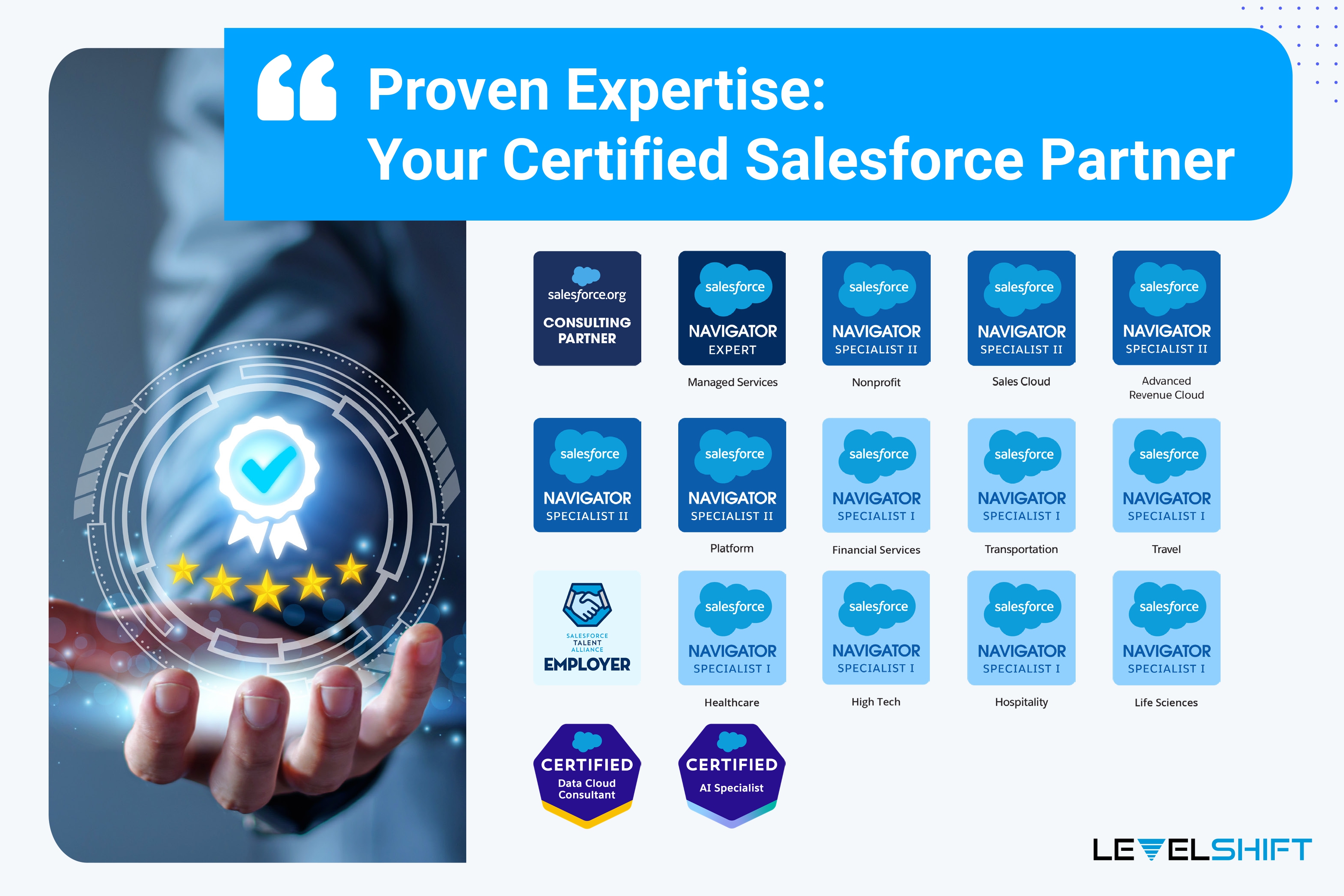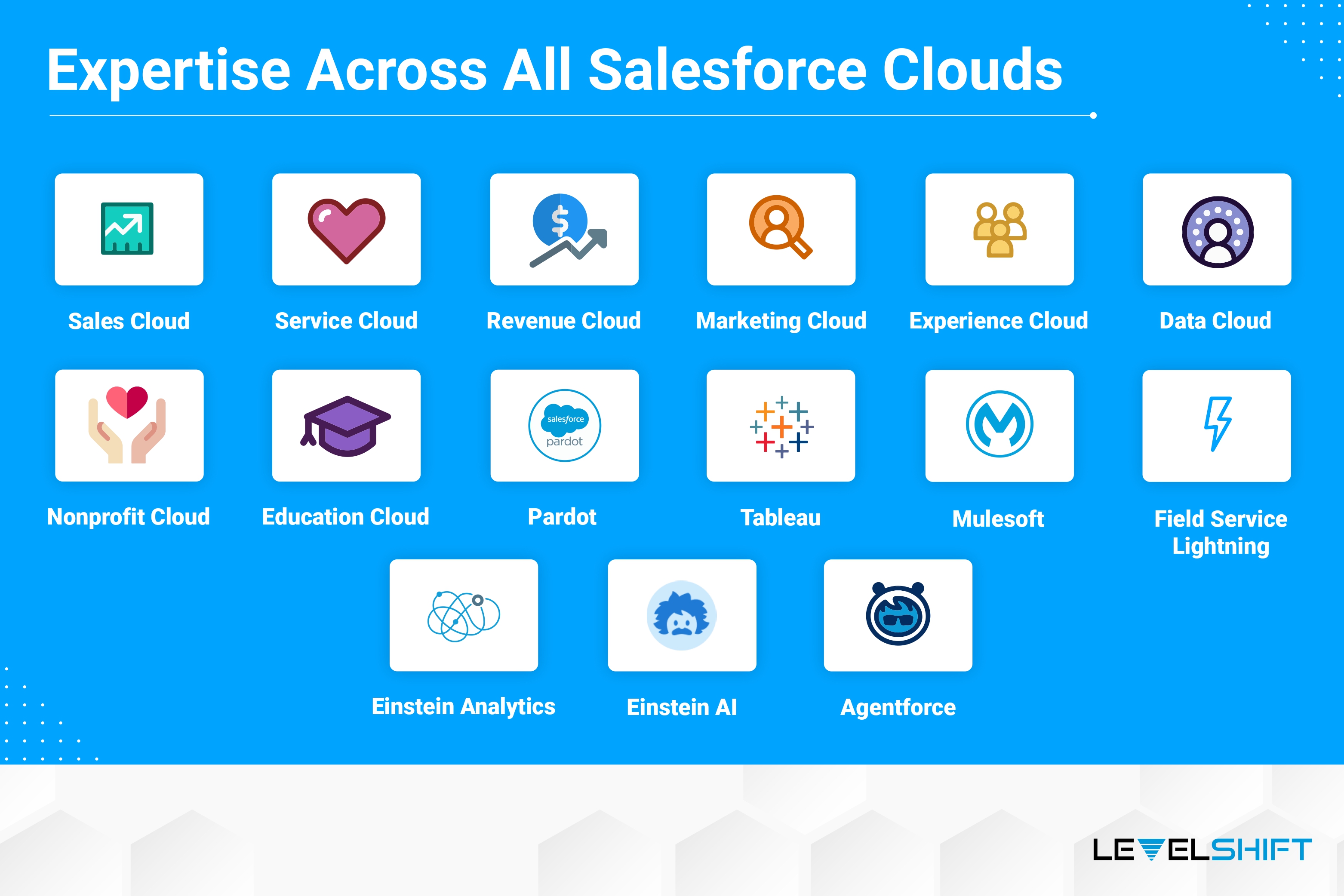 About LevelShift We are LevelShift, driving the next generation of customer experiences through intelligent automation, predictive AI, and Agentforce innovation. AI sits at the center of everything we do—our certified experts turn insights into action, delivering measurable impact. ####With AI agents across Sales, Service, and Marketing, we unlock speed, value, and success, helping businesses achieve real ROI in days, not months.