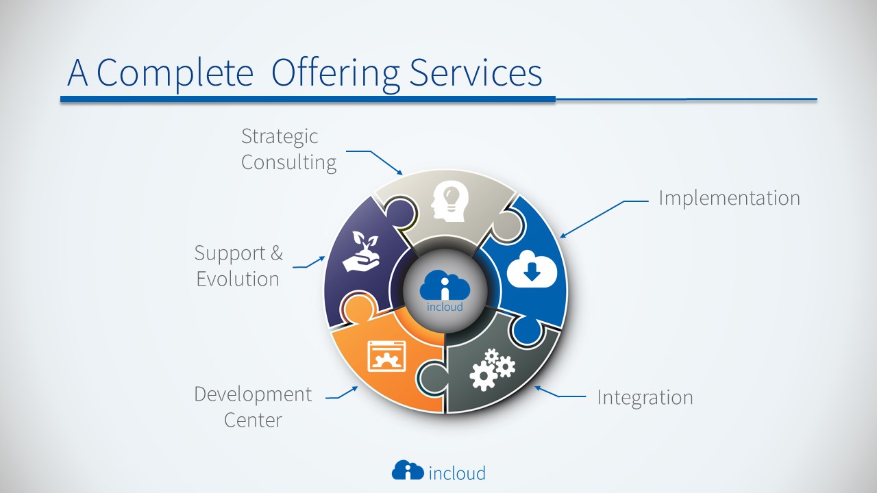 Software Implementation and Integration:##Thanks to its extensive experience, Incloud’s technical team knows how to efficiently implement Salesforce solutions and how to integrate them with other legacy systems.