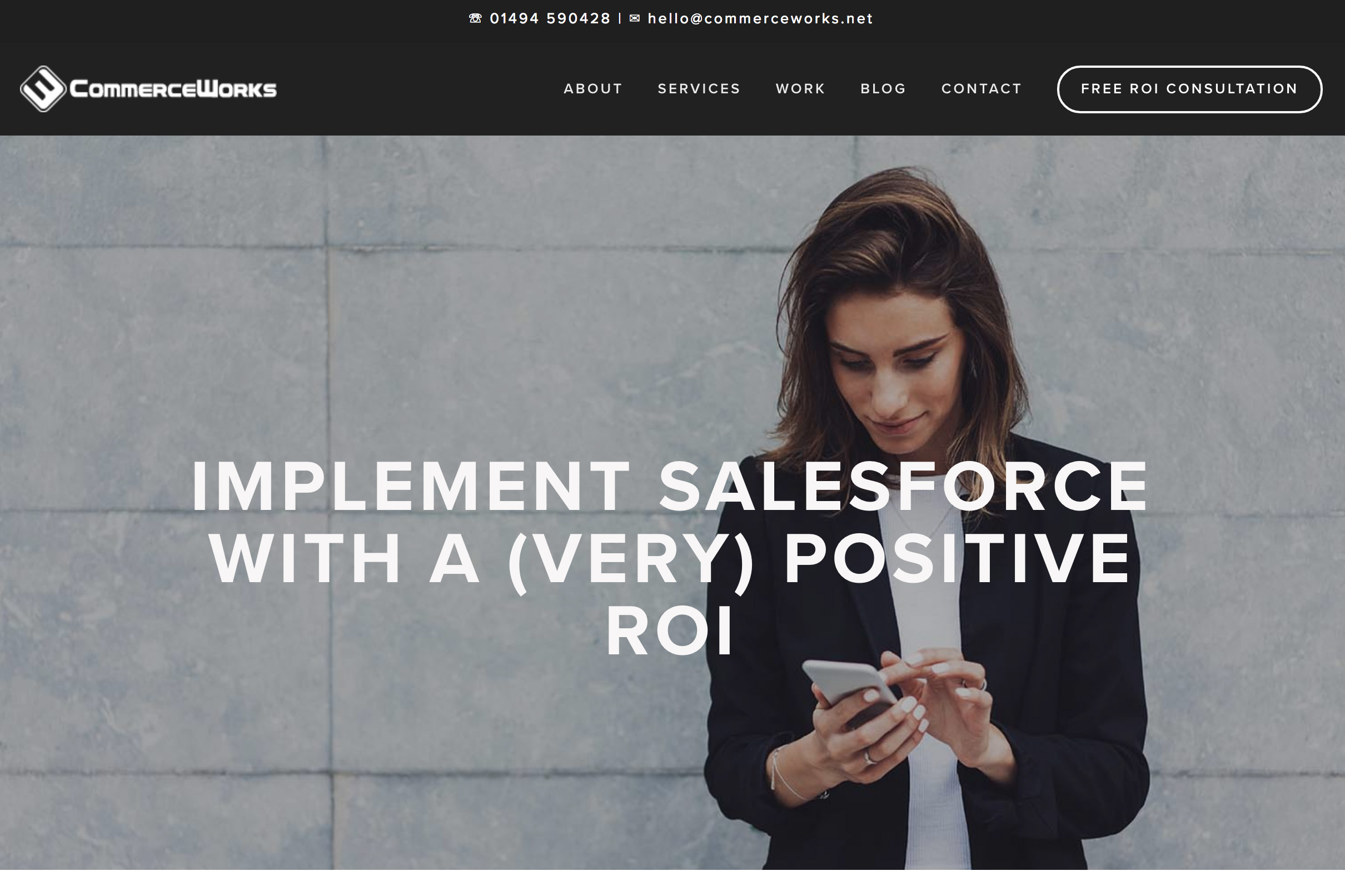 Salesforce are an experienced Salesforce consulting company, passionate about our small and medium sized customer base. We work hard to find the best solutions for our customers and ensure your Salesforce investment is profitable and successful to your business.####If you want to try before you buy then email hello@commerceworks.net, call 01494 590428 or Complete the form at http://www.commerceworks.net/free-salesforce-consulting/ for one free day of Salesforce consulting.