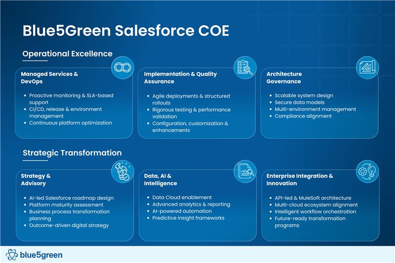 Blue5Green is an industry-focused global Salesforce and AI expert, leveraging deep industry expertise and cutting-edge technologies to solve. We are big enough to deliver, but small enough to care.
