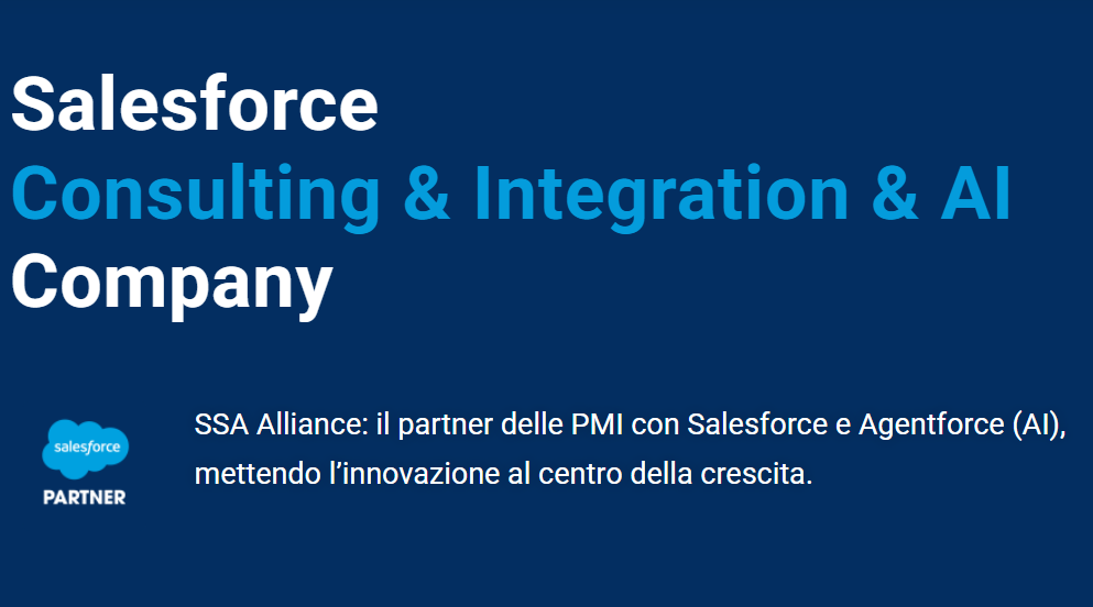 SSA Alliance è una società di consulenza specializzata su Salesforce che progetta e implementa Salesforce come piattaforma applicativa centrale dell’azienda, in cui le integrazioni sono parte strutturale dell’architettura e non un’estensione successiva.