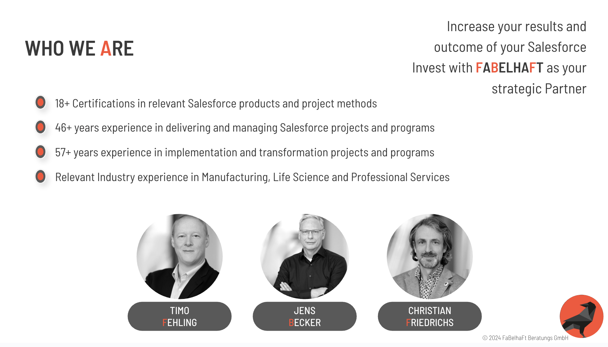 FABELHAFT Consulting is a Salesforce advisory firm founded in 2024. We believe that with the right systems and guidance, organizations can significantly enhance their customer interactions and transform the way they work.