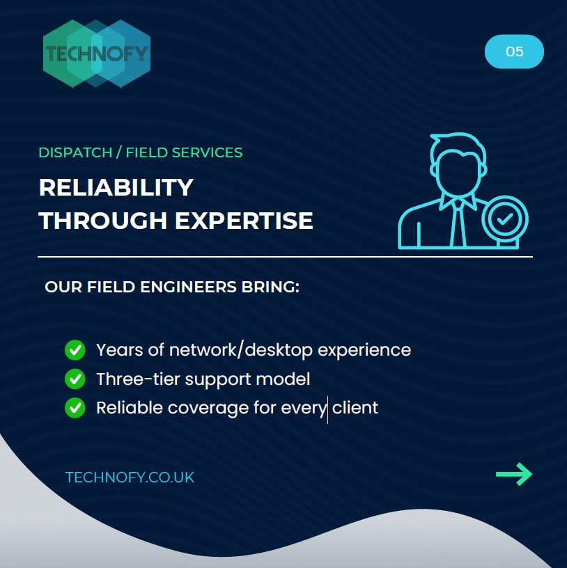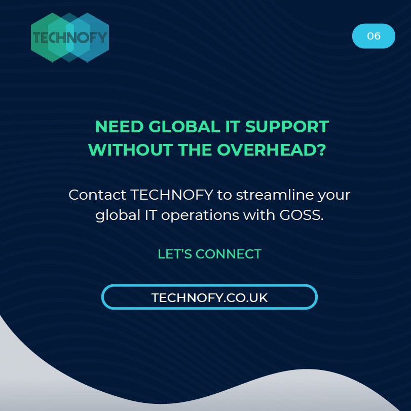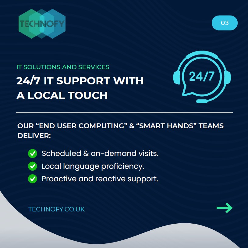 Technofy Ltd provides end-to-end global onsite IT support, field engineering, and managed services to organisations of all sizes.##We specialise in delivering fast, reliable, and high-quality onsite technical assistance in more than 175 countries — acting as your “feet on the ground” wherever you operate.####Our certified engineers handle a wide range of services, including:####Onsite desktop, laptop, and device support####Hardware break/fix and replacement####Network, WiFi, and infrastructure troubleshooting####Smart Hands / Remote Hands services####Office moves, installations, and structured cabling####Data Centre and server room support####VIP/Executive support####Multi-lingual service desk and coordination####With a strong global partner ecosystem and proven track record, Technofy supports leading brands including Subsea 7, Lloyds, Hexaware, Wickes, Volkswagen, Yorktel, MAN, and Sage.####We help customers reduce downtime, improve service delivery, and extend their global IT reach — all with a single, reliable partner.