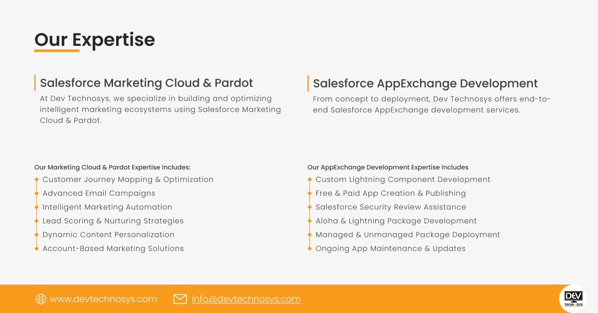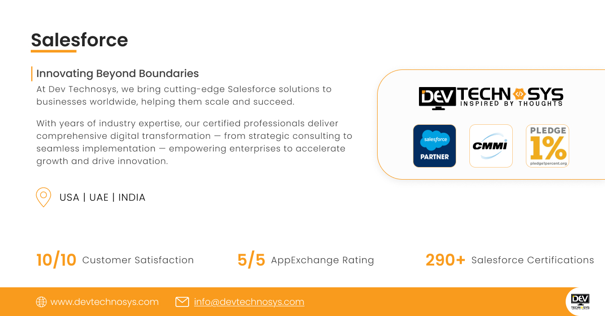 At DevTechnosys, we are more than just Salesforce implementers—we are your strategic partners. We take a deep-dive approach to understand your unique business needs, from siloed data to complex integration challenges, and deliver tailored solutions.