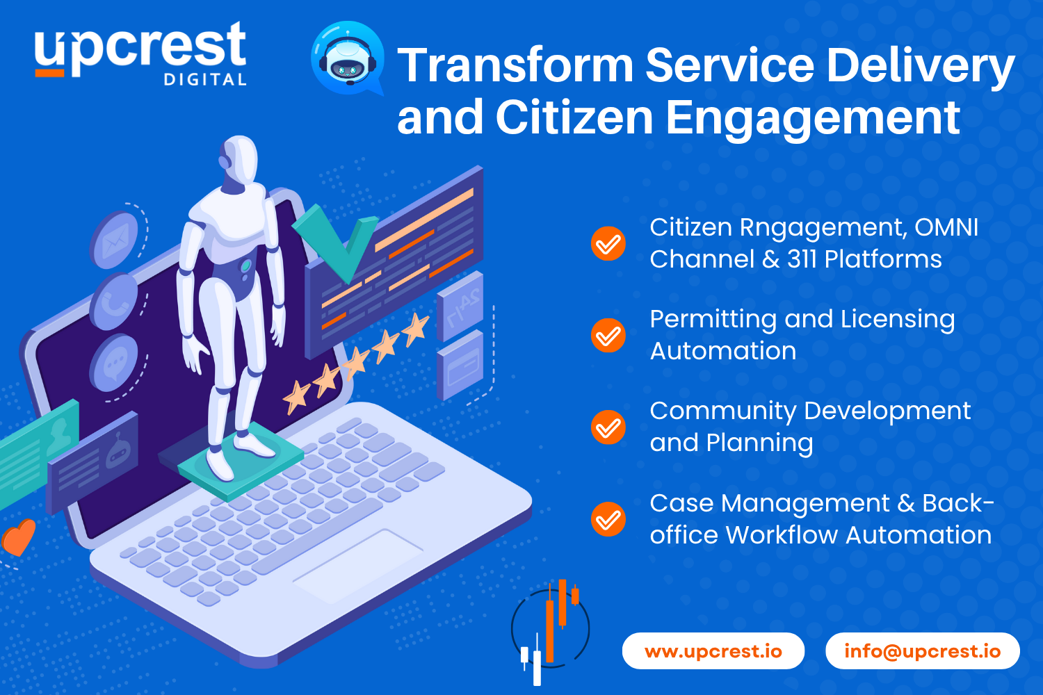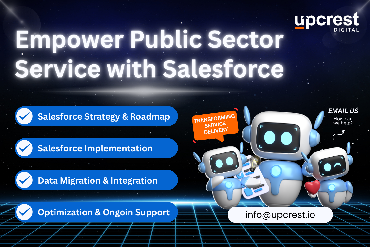 Upcrest Digital empowers governments with Salesforce and Agentforce, integrating AI, automation, and data-driven insights to streamline workflows, modernize service delivery, and build citizen-focused digital platforms.