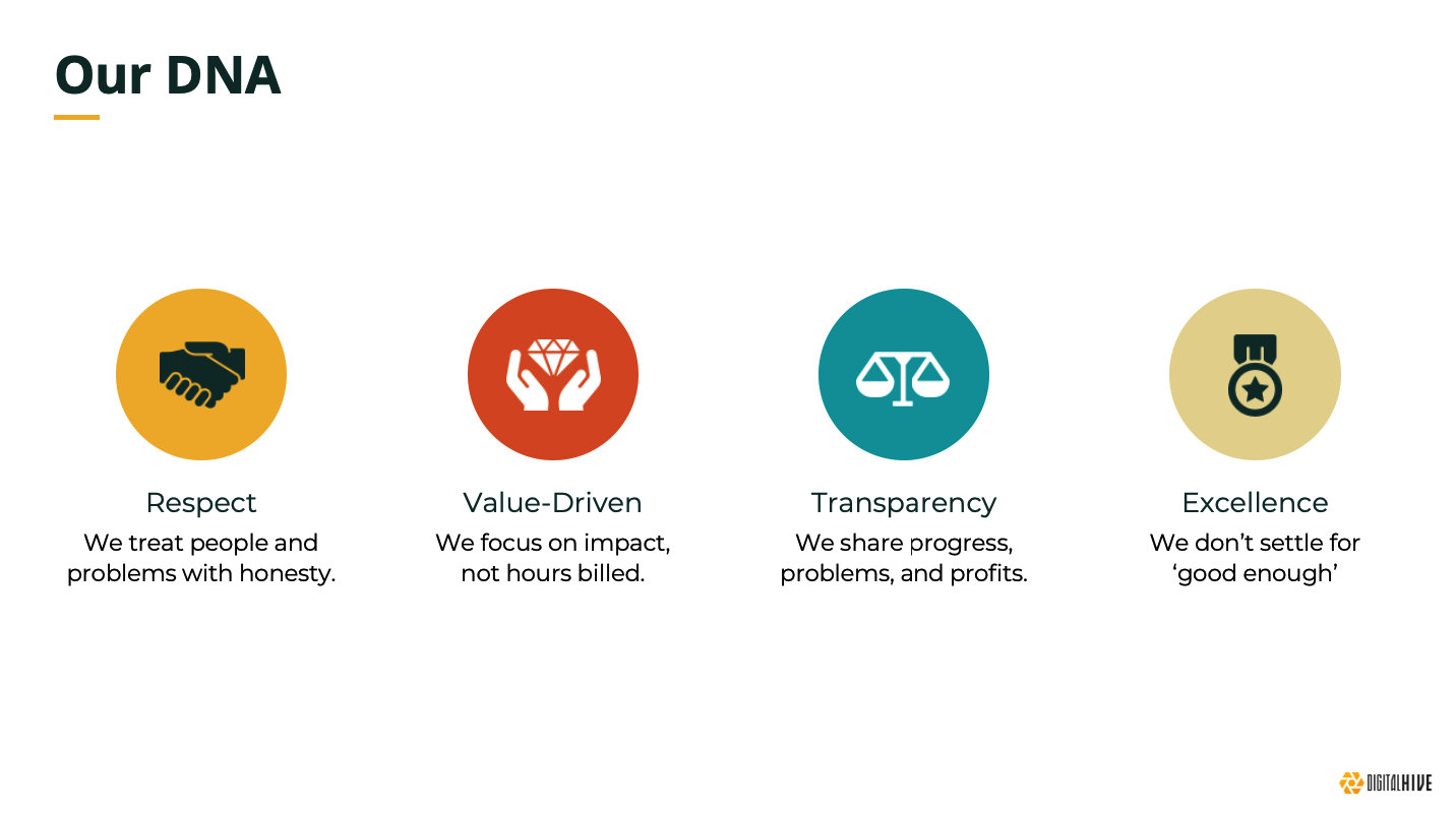 Digital Hive consultants bring seniority, pragmatism and transparency. No buzzwords, no nonsense - just value. Clients choose us because we make CRM, Data and AI actually work, aligned to your business goals and built to strengthen customer success.