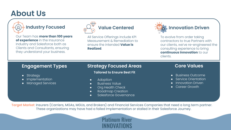 Platinum River Innovations helps Insurance and Financial Services Companies maximize their outcomes with Salesforce.