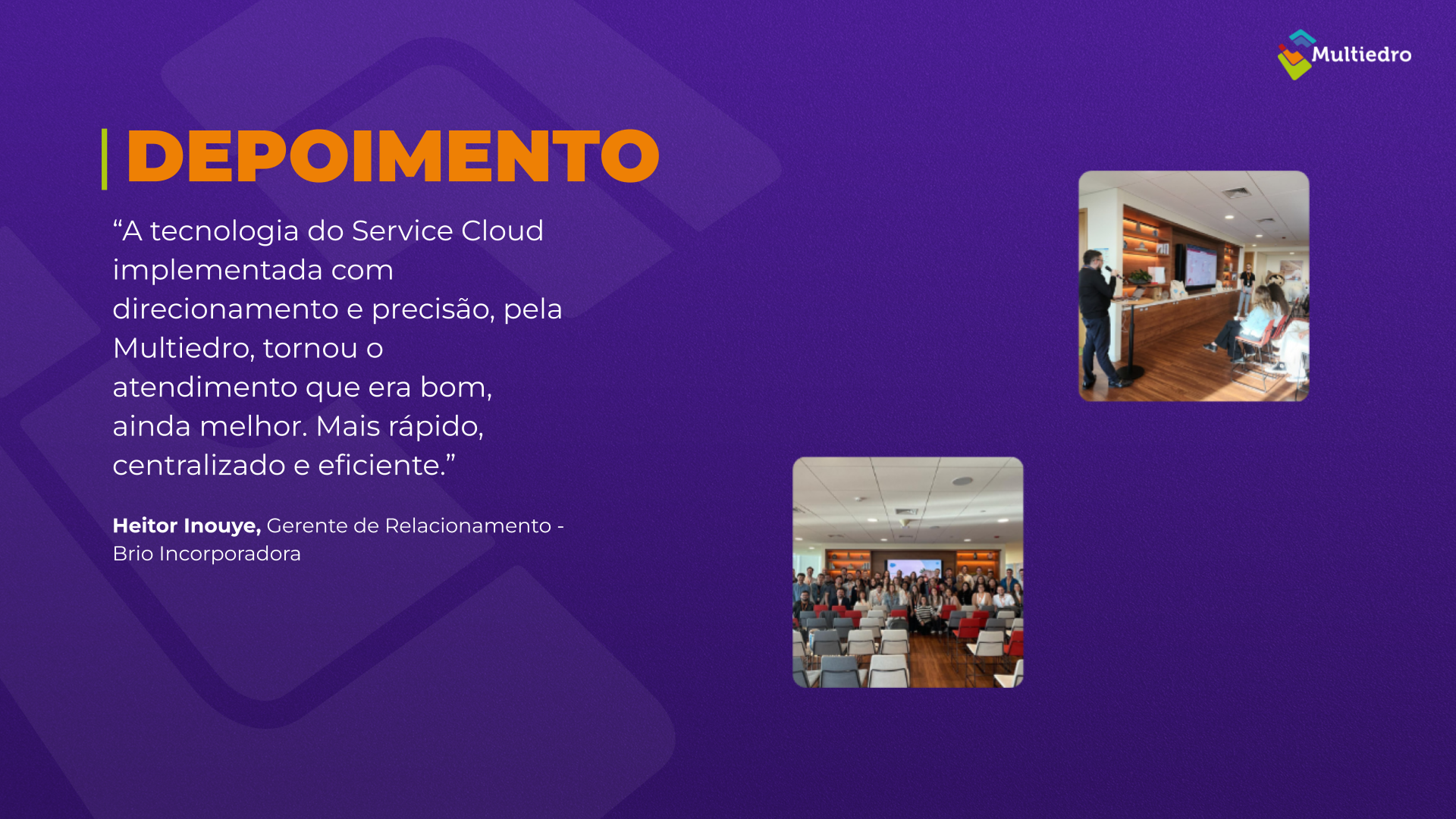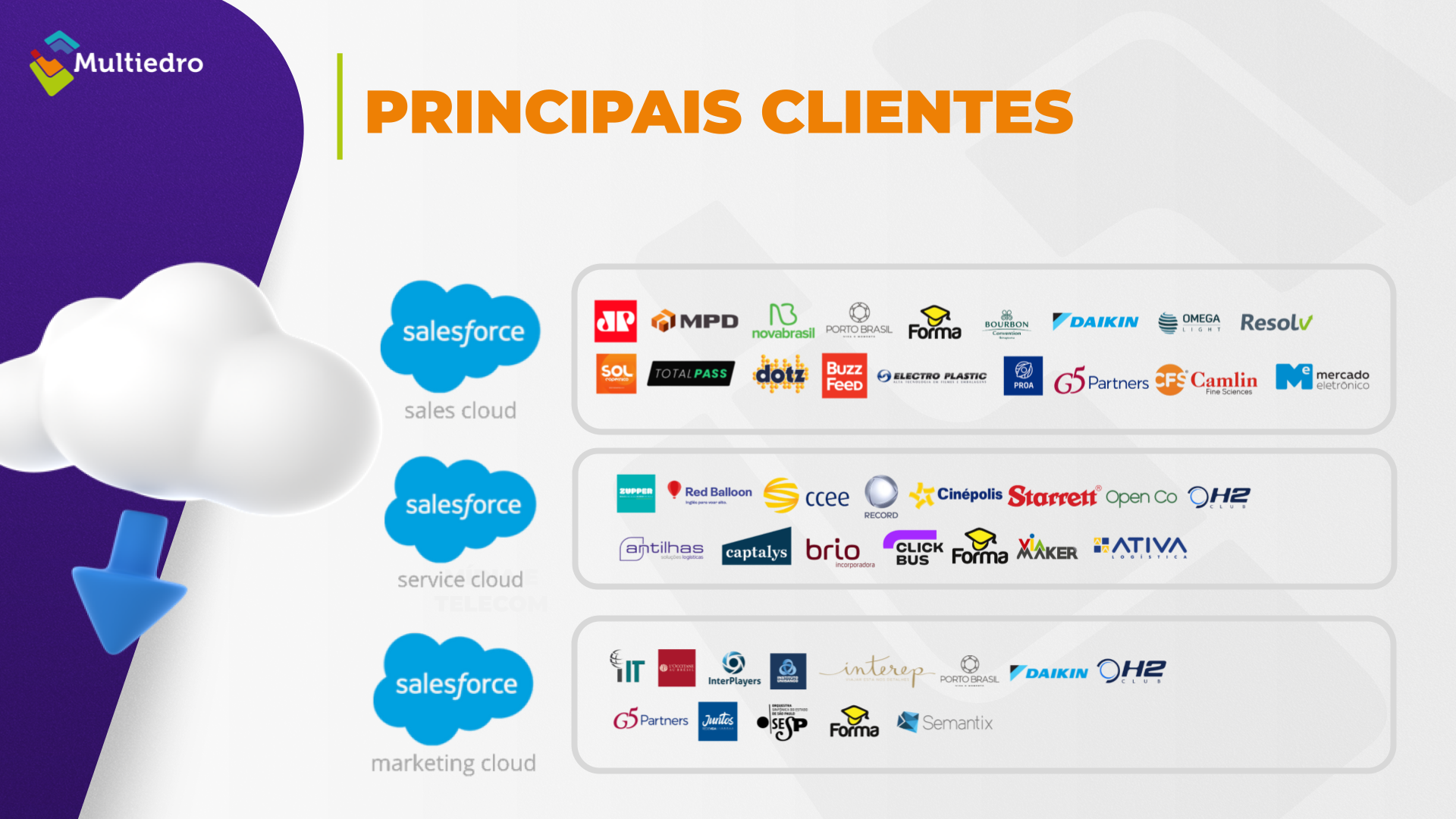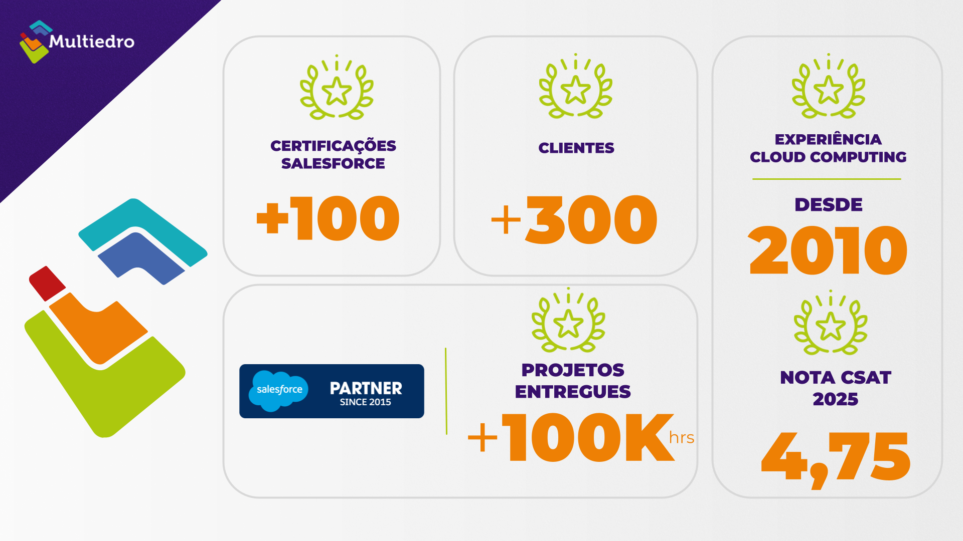About Multiedro Multiedro: Excelência em Soluções de Computação em Nuvem####A Multiedro é uma empresa brasileira de destaque, especializada em soluções de Computação em Nuvem e parceira oficial da Salesforce desde 2015. Ao longo desses anos, acumulamos uma sólida experiência com a entrega de mais de 300 projetos bem-sucedidos, abrangendo plataformas como:##* Sales Cloud##* Service Cloud##* Agent Force##* Data Cloud##* Marketing Cloud Engagement##* Marketing Cloud Account Engagement (Pardot)####Contamos com uma equipe de profissionais altamente qualificados e certificados, comprometidos em entregar soluções estratégicas que promovem ganhos reais de produtividade, eficiência e crescimento para os nossos clientes.####Na Multiedro, acreditamos em parcerias duradouras e na construção de resultados concretos por meio da inovação e da excelência técnica. Estamos prontos para apoiar a transformação digital do seu negócio.