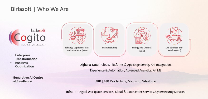 About Birlasoft Birlasoft offers a tailored approach to maximize the full potential of Salesforce for businesses across industries such as Manufacturing, CMT (Communications, Media & Tech), BFSI, Life Sciences and Energy & Utilities. Our strong partnership with Salesforce and proven experience positions us uniquely to propel organizations towards greater business agility and growth.##We collaborate closely with organizations to understand their unique requirements and business processes and meticulously design and configure the platform to align with business needs, ensuring a seamless and efficient implementation. Our goal is to maximize customers’ ROI from their Salesforce investments and empower them to leverage Salesforce to drive profitable growth, achieve higher customer realization, and increase customer lifetime value.