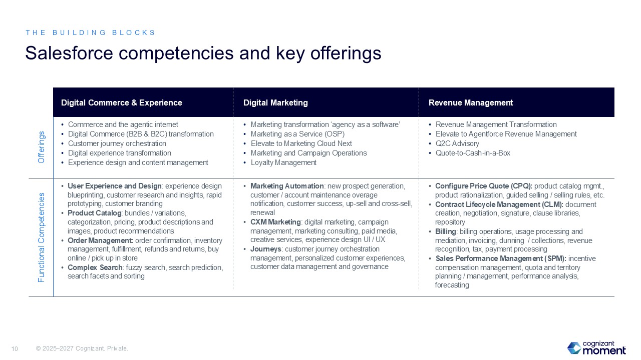Cognizant is a leading end-to-end provider of Salesforce services, including design, consulting, implementation and support. We are focused to help our clients discover emotional connections to their customers, innovate and fulfill their brand promise.