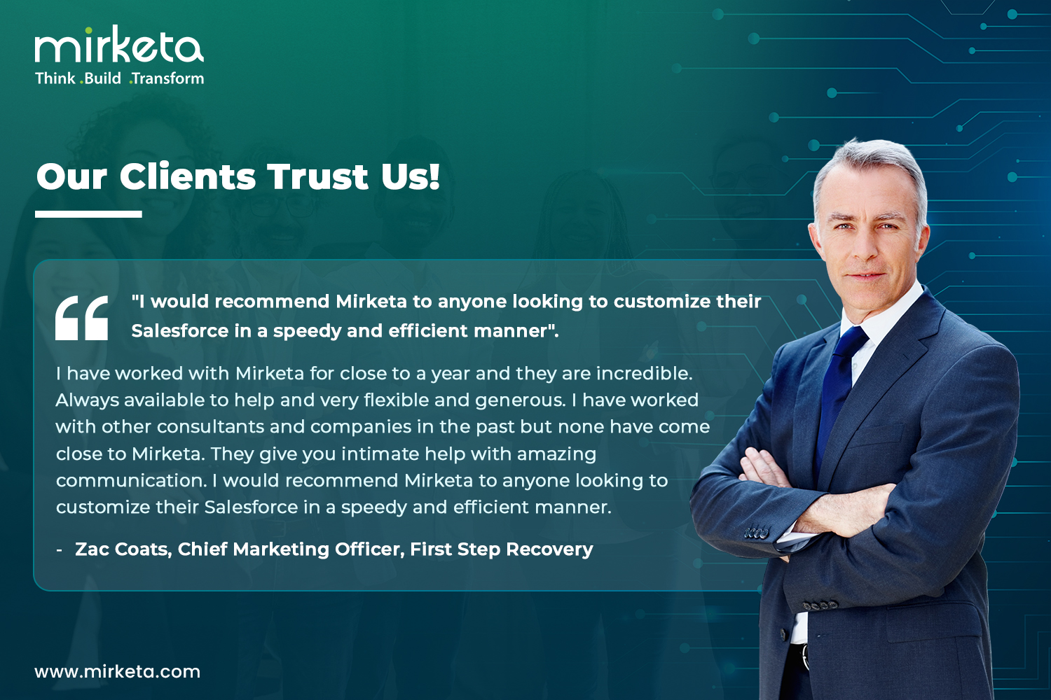 Mirketa is a trusted, analyst-recognized Salesforce partner delivering enterprise solutions across Nonprofit, Healthcare, Education, Marketing, and Manufacturing, with 1,000+ successful projects and 24×7 global support.
