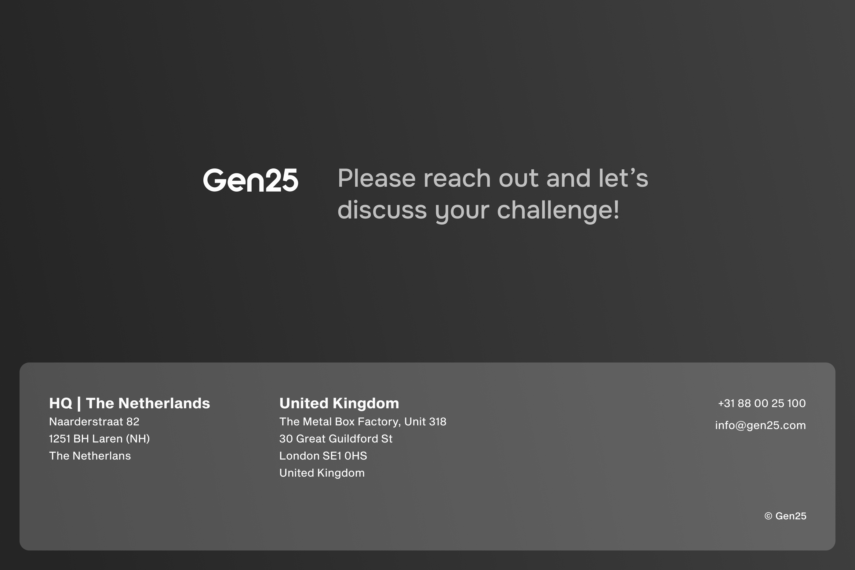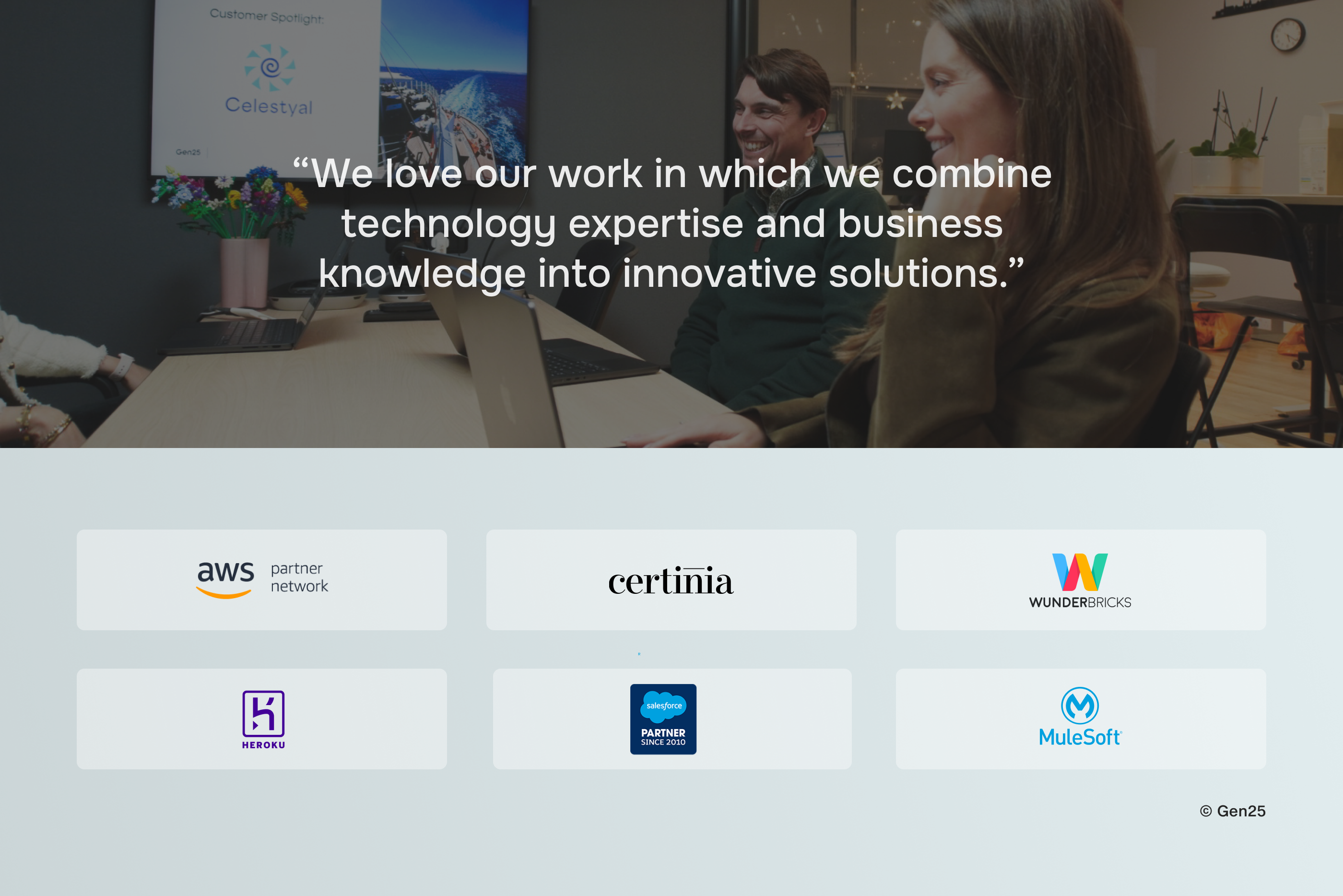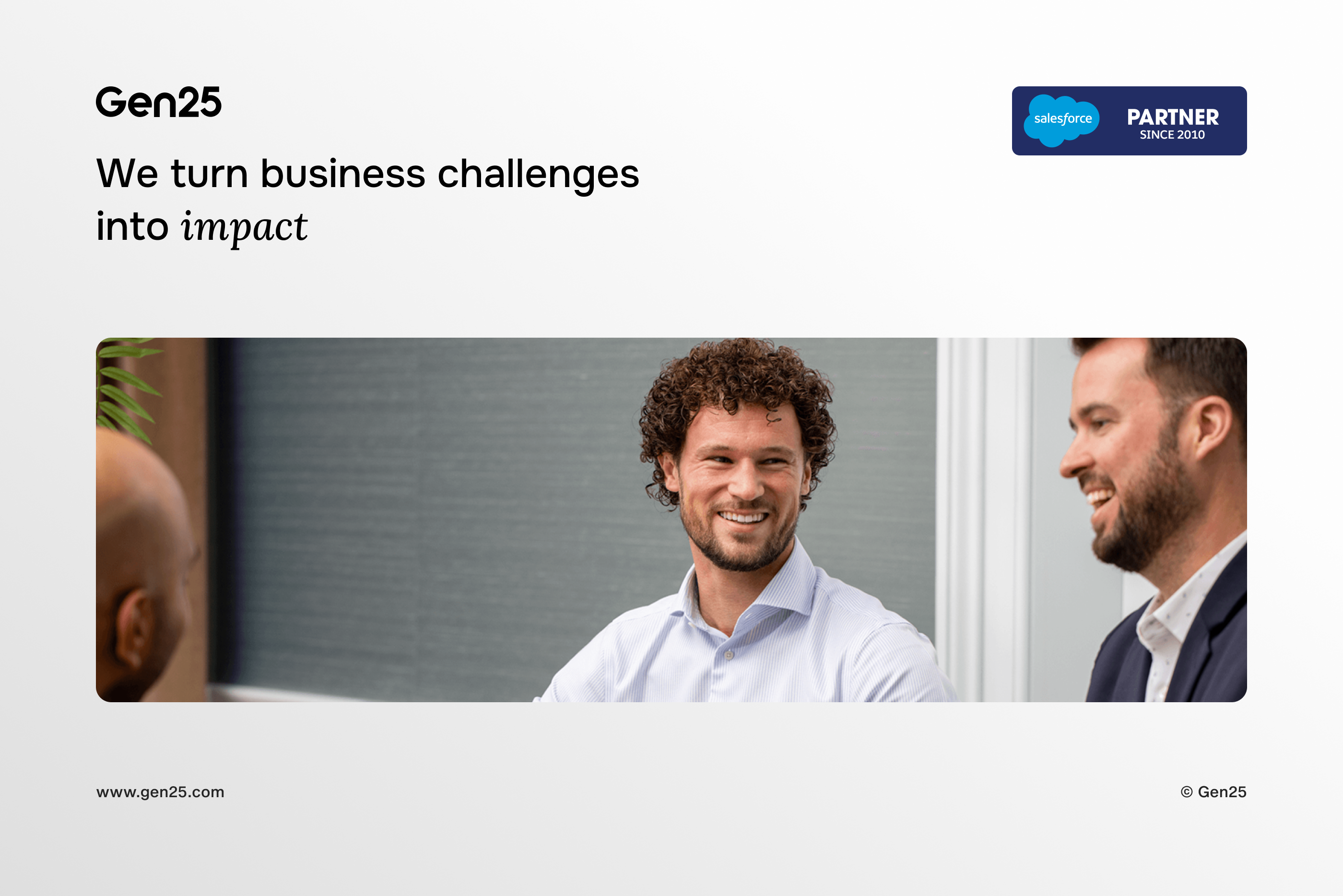 Gen25 is a Salesforce Summit partner with a track record of over 400 successfully delivered projects. Our business and technology consultants work side-by-side with you to unlock digital transformation. We don’t just echo the crowd, we create real impact.