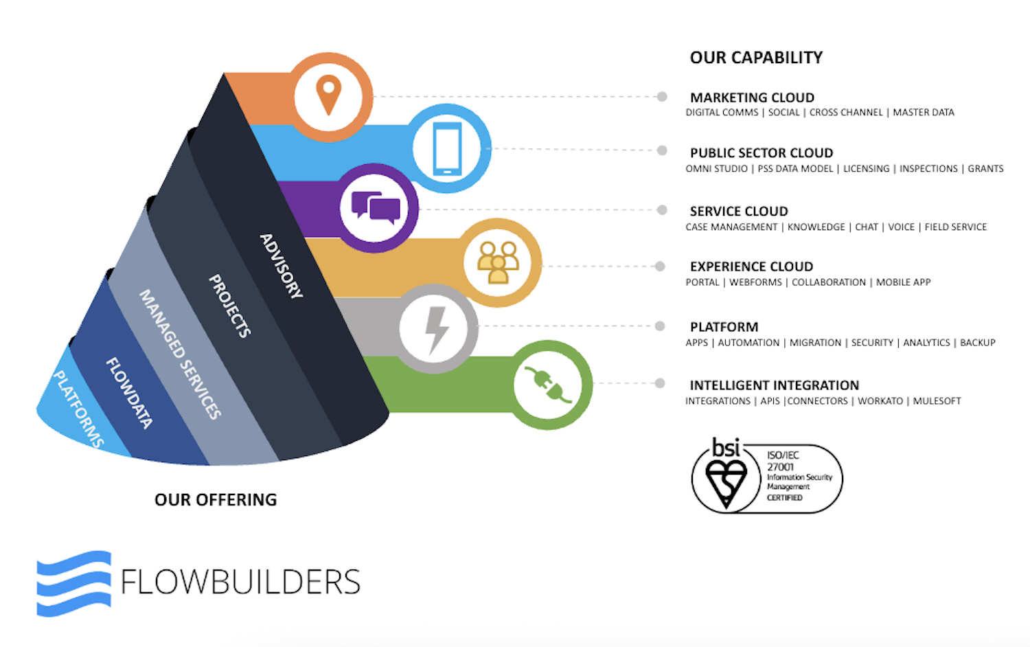 About FlowBuilders Pty Ltd FlowBuilders partners with organisations to find their flow - by transforming processes, data and people. ####We provide consulting, implementation, managed services and system integration to help you get the most out of your technology.####Our team of certified experts is based in Australia, with deep experience and specialist knowledge in service, marketing, integration and data security projects.####And with certification to ISO/IEC 27001 Information Security Management Systems, you can be confident in our systems, processes and approach to information security.