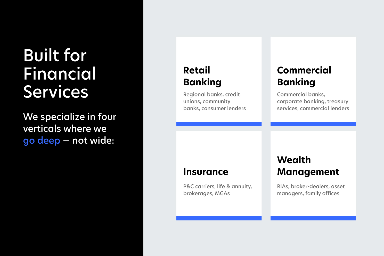 Icreon delivers AI-powered Salesforce implementations for financial services in 8-12 weeks — not years. We specialize in FSC, Agentforce, Data Cloud, Marketing Cloud & Revenue Cloud for banking, insurance, and wealth management institutions. Based in NYC.
