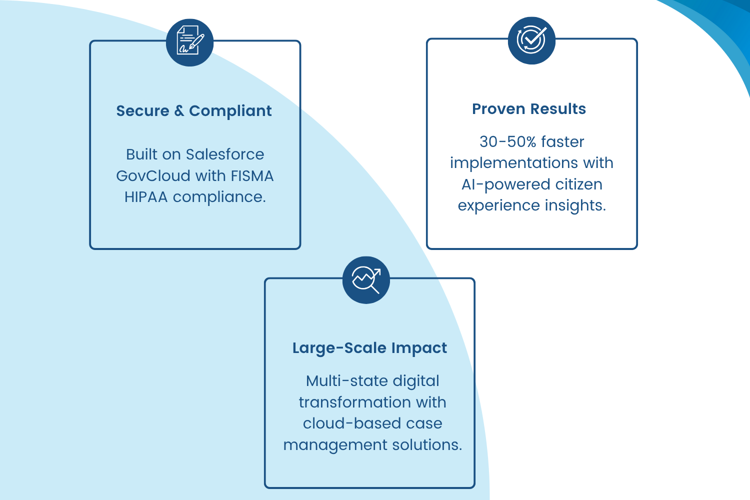 • Experts in Public Service Modernization: ##20 years delivering Salesforce solutions for human services, health, workforce, and nonprofit programs.
