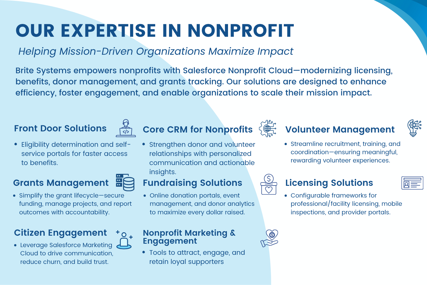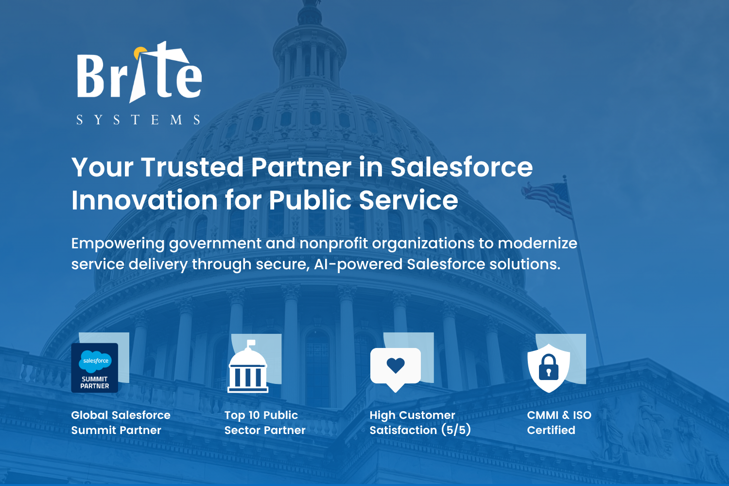 Brite Systems is a global Salesforce Summit Partner helping public sector and nonprofit organizations modernize programs, streamline operations, and improve outcomes through secure, AI-powered Salesforce solutions built for impact and long-term success.