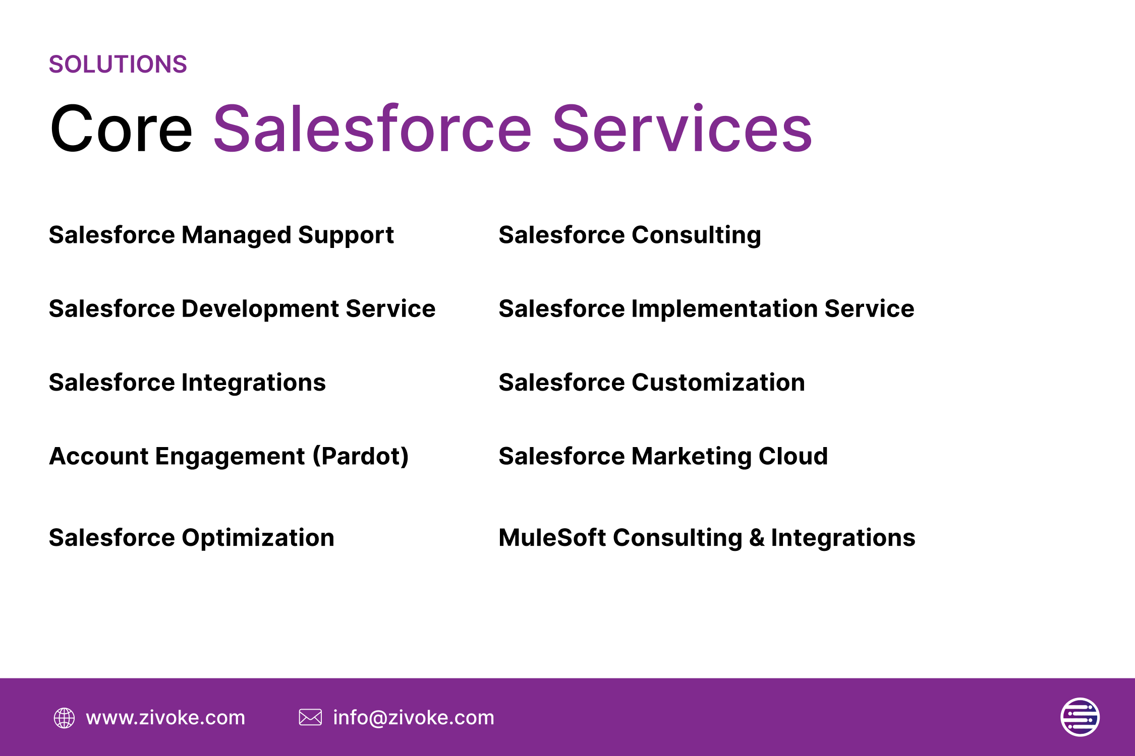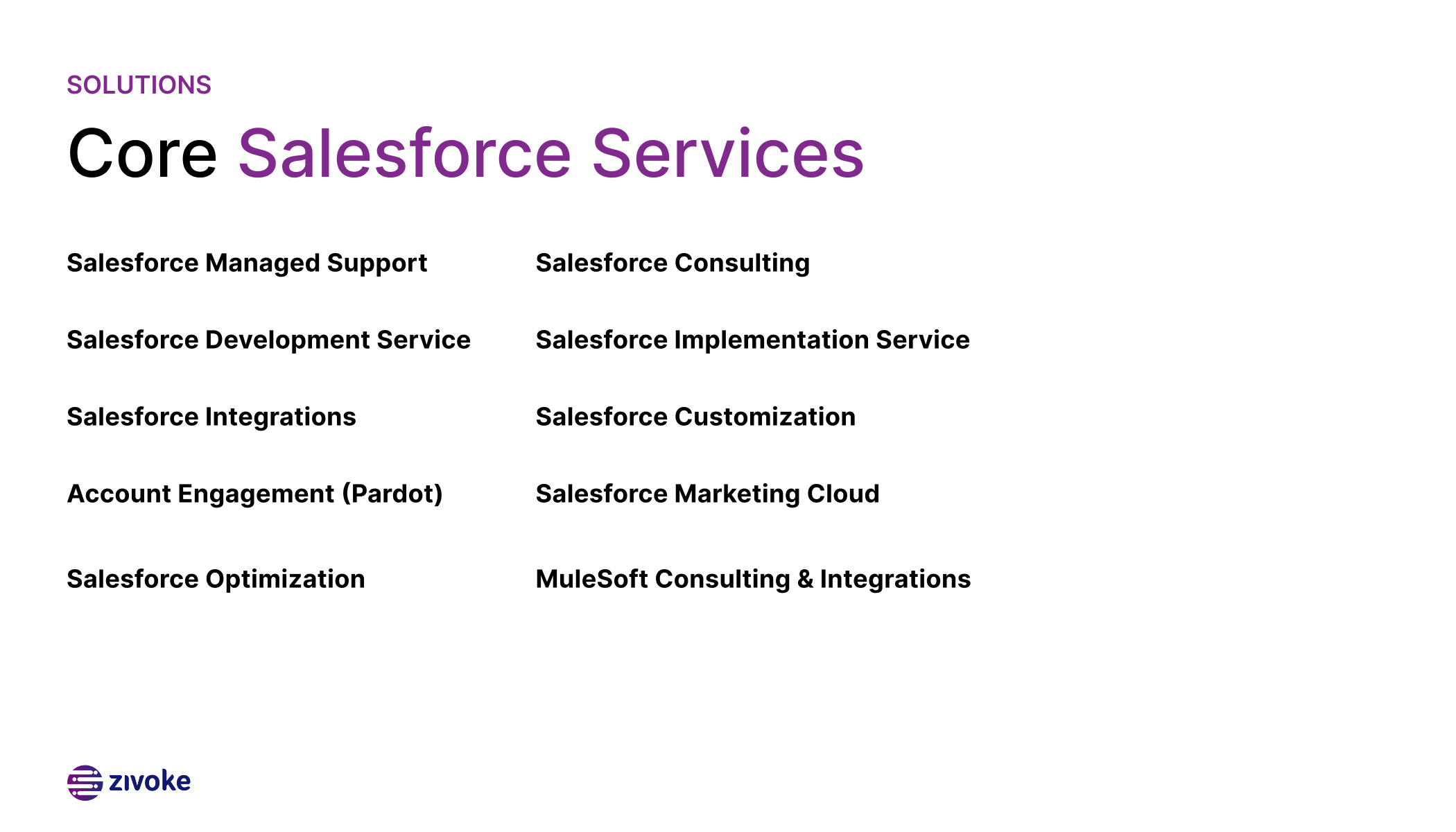 Salesforce Managed Support | Salesforce Implementation | Salesforce Consulting Specialist####Zivoke is the #1 Salesforce Managed Service Provider delivering ongoing support and optimization to help customers maximize their Salesforce investment.