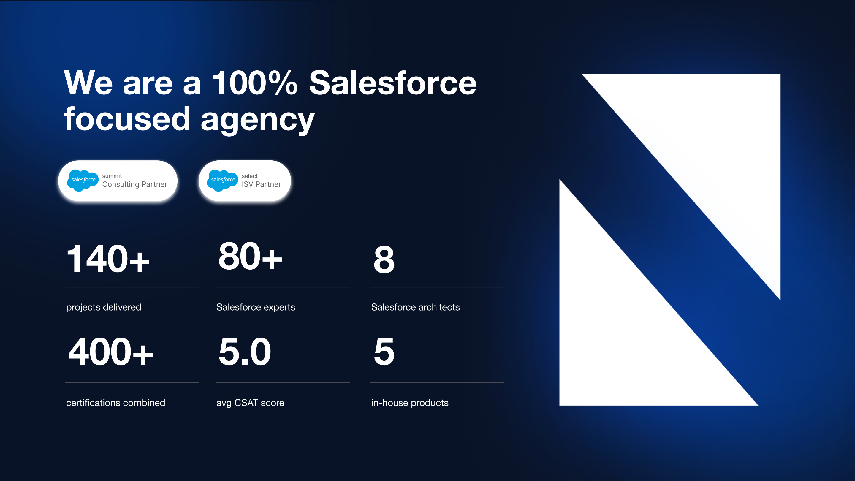 About Noltic Noltic is a Salesforce consulting and full-cycle development agency supporting Tech, Retail, and Financial industry leaders for almost 10 years.##Among other notable achievements and awards, Noltic proudly holds Summit Consulting and Select ISV Salesforce Partner badges. In early 2017, we made it our mission to help clients leverage Salesforce's features and capabilities to the fullest to unlock their full growth potential. Our leadership team has over 15 years of experience building complex architectures and delivering success for businesses of all sizes.##To date, 110+ projects have been completed with an average customer satisfaction rating of 4.9 across Europe and the United States. Our team consists of 80% tech professionals who collectively hold 400+ Salesforce certifications, and with 10 talented Salesforce architects standing for each project's success, we guarantee exceptional quality of our services!