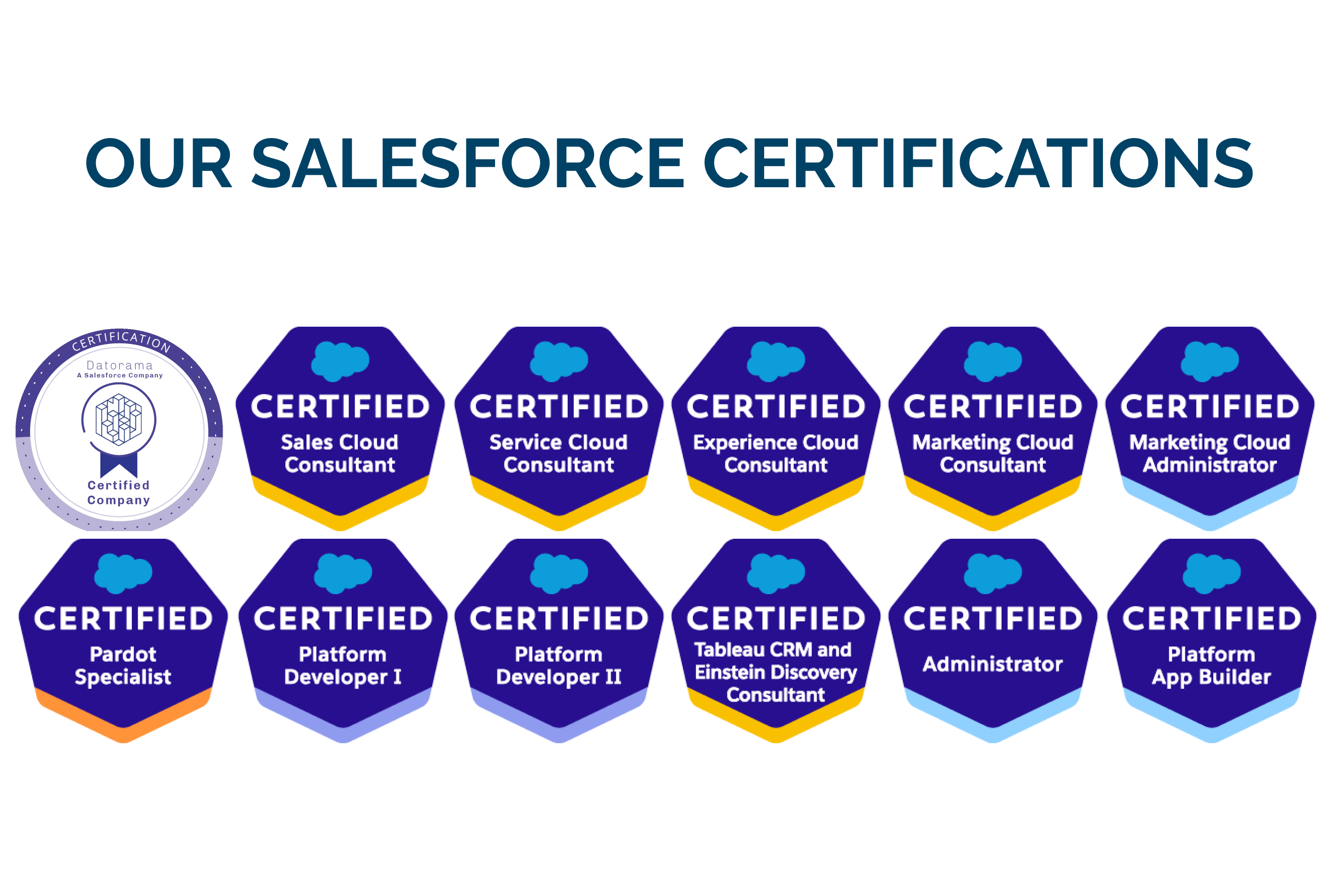 Certified in all Core Clouds and Full-Stack Marketing Cloud, Interaction Studio, CDP, Datorama