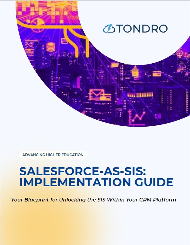 About Tondro Consulting Tired of one-size-fits-all partners who treat higher ed like just another vertical?####Tondro is a 100% higher ed focused Salesforce partner. We collaborate with institutions of all sizes to solve your most complex challenges. Our approach is built on a proven 3-Pillar Framework: Data | Process | Culture. We know transformation only sticks when data are clean, processes are streamlined and your teams are primed for change.####Our Specialized Offering: Salesforce-as-SIS is ideal for small and mid-market institutions (<10K enrollment). We've delivered 4 complete Student Information Systems (SIS) built on Salesforce Education Cloud and early results are strong!####Full Legacy Replacement: We're experts at third party integrations/migrating institutions from PowerCampus, CAMS, PeopleSoft & Anthology, helping IT Departments reduce technical debt.####Rapid Go-Live: Launch a new, unified SIS in < 10 months.####One Platform: Give your Admissions, Registrar and Bursar teams a single, unified platform to manage the entire student lifecycle, from Recruiting to Student Records, Financial Aid and Billing.####TondroAI Transcripts is here!####Salesforce Consulting for All Institutions | Implementation Rescue