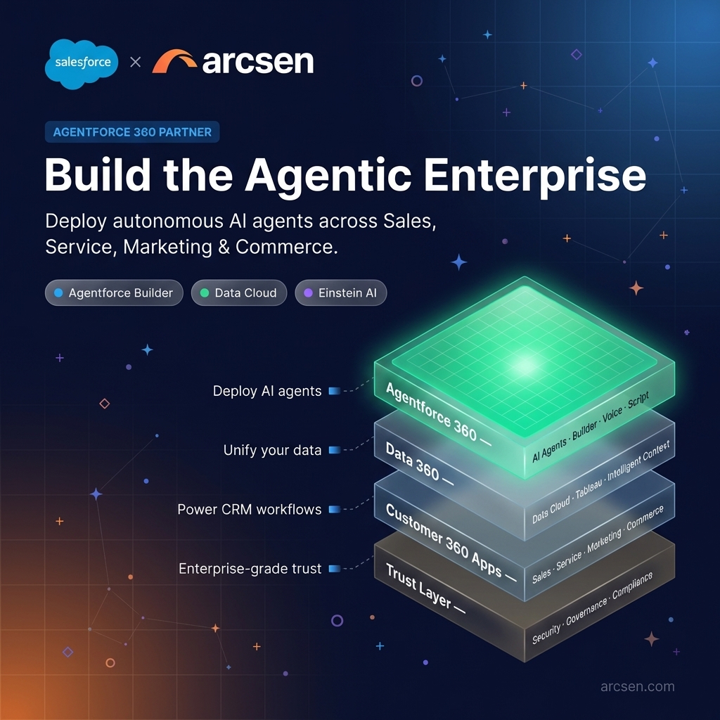 About Arcsen Arcsen is a leading global technology consulting firm specializing in providing innovative solutions and expert guidance to businesses across EMEA. With a commitment to excellence, Arcsen partners with industry giants such as Salesforce, MuleSoft, Tableau, Slack, ensuring clients receive top-tier services tailored to their unique needs.