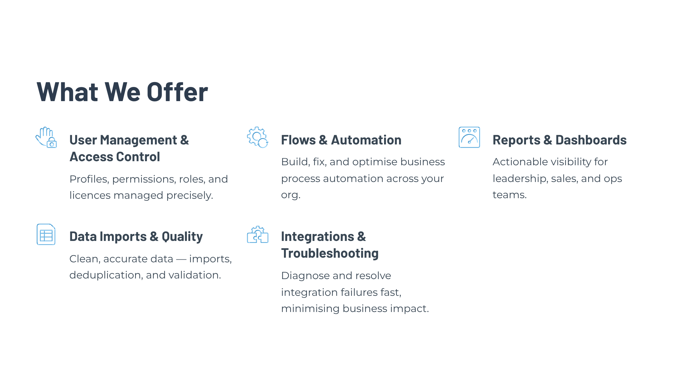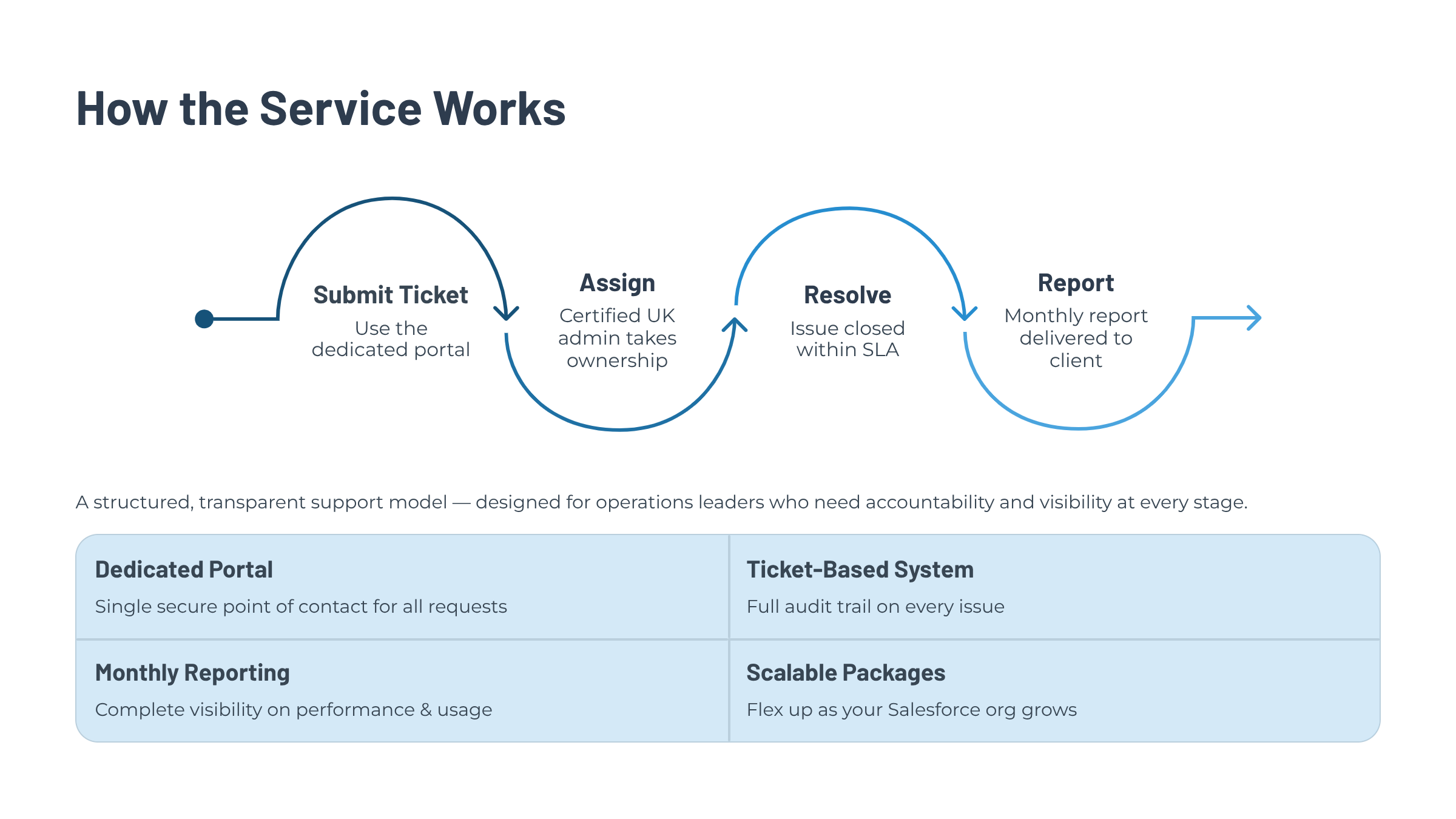 We do more for less. Expert Salesforce Administration and Support from £12.5K/year. Trusted, reliable, and built for growing businesses.