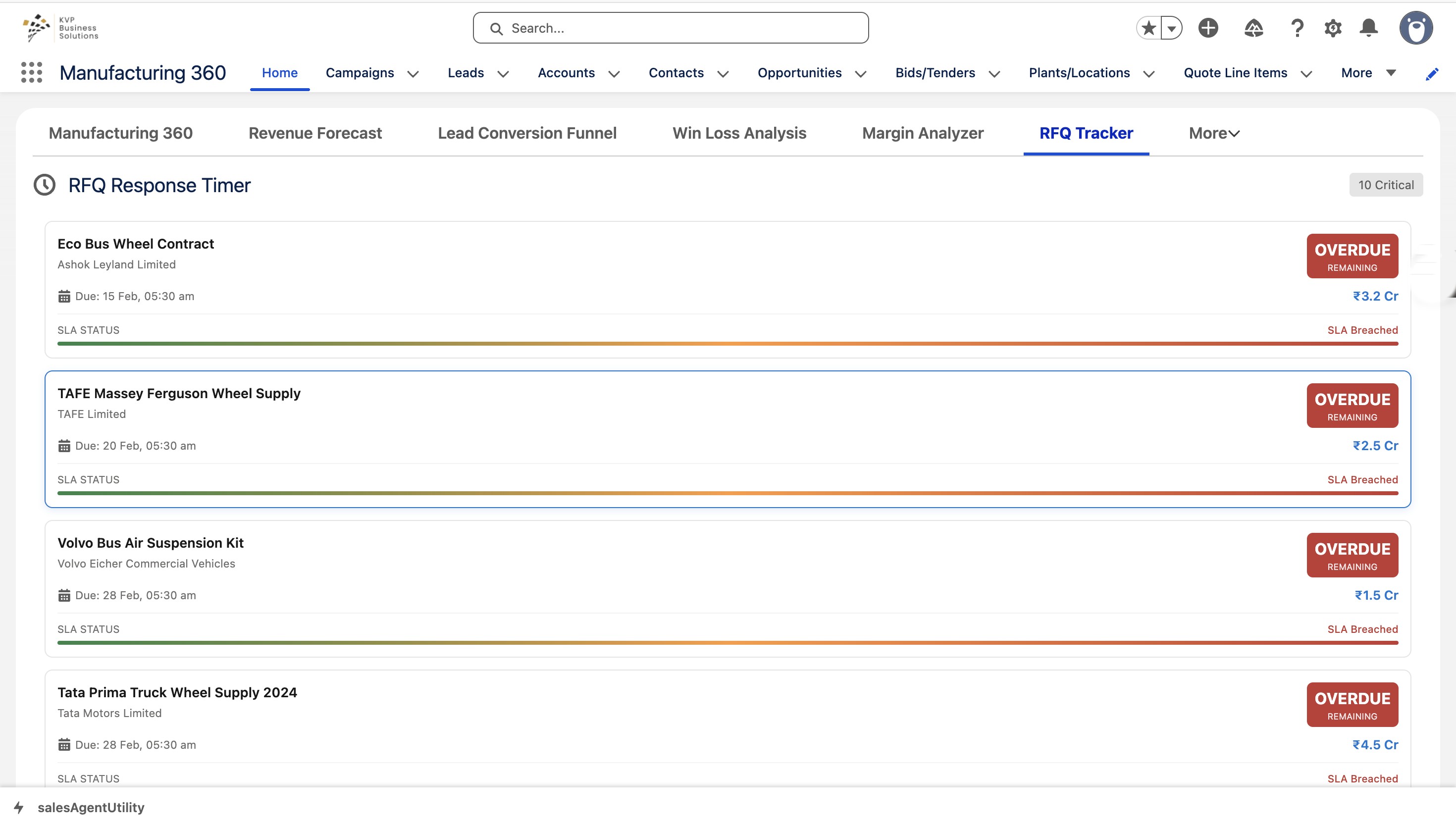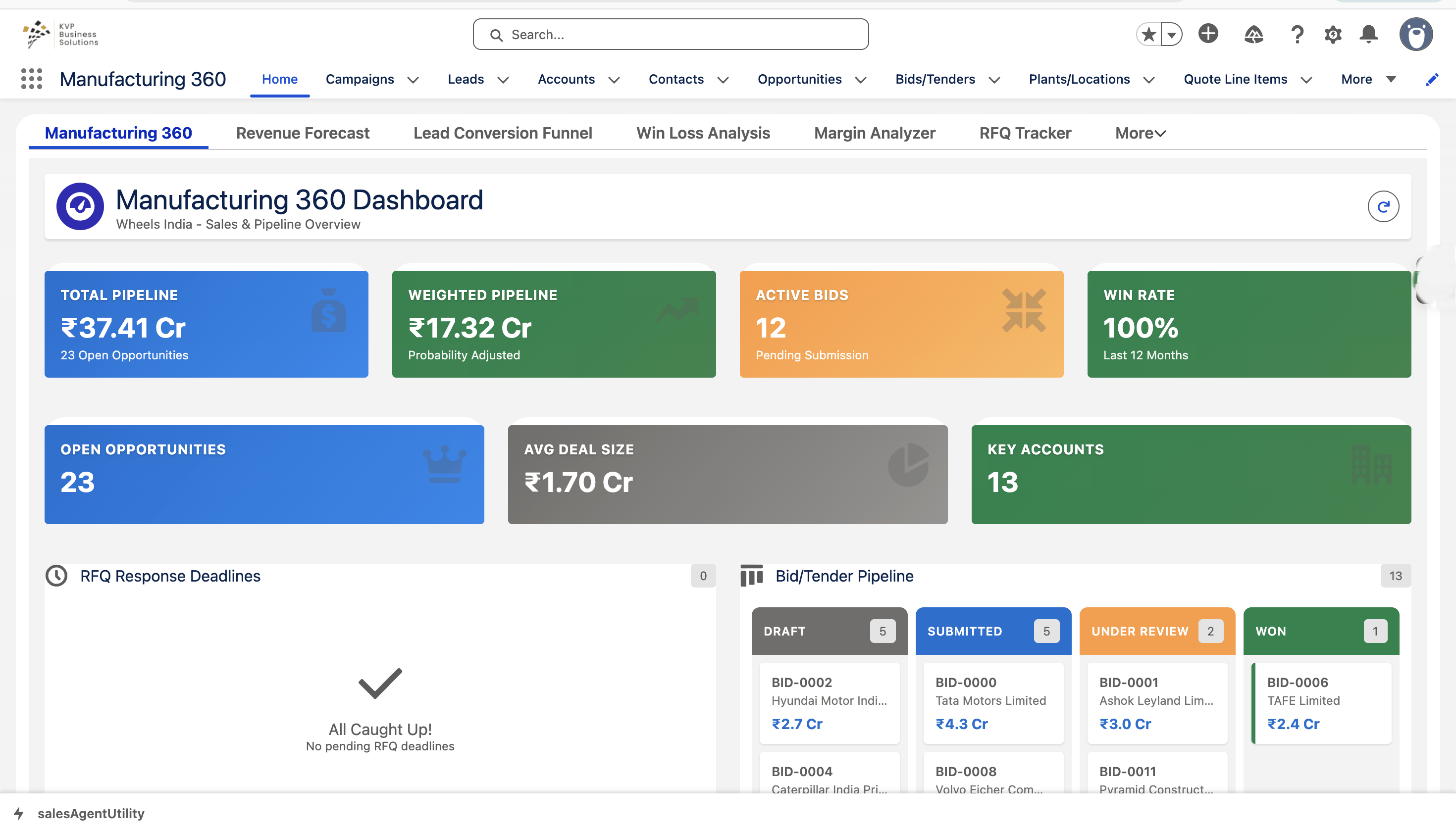 KVP Manufacturing Accelerator helps manufacturers streamline operations, track RFQs, manage opportunities, and improve sales visibility using Salesforce dashboards and automation.