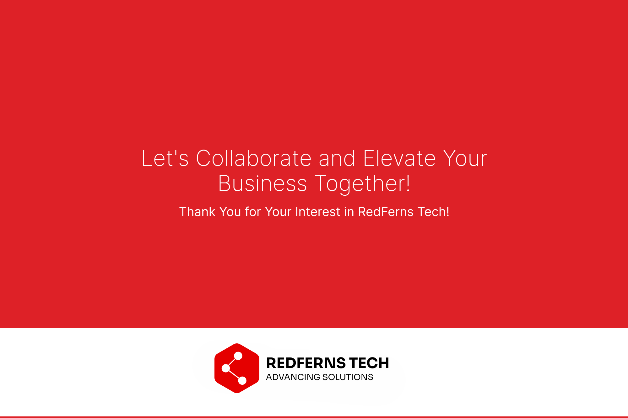 About RedFerns Tech Private Limited Through our cutting-edge technology and expertise, we provide businesses with a range of tools and strategies as well as specializes in revolutionizing the way business interact. We understand that customer engagement is crucial for success, and we have developed innovative solutions to enhance this interaction. Together we will create memorable experiences that foster loyalty, drive growth and set you apart in a competitive marketplace.