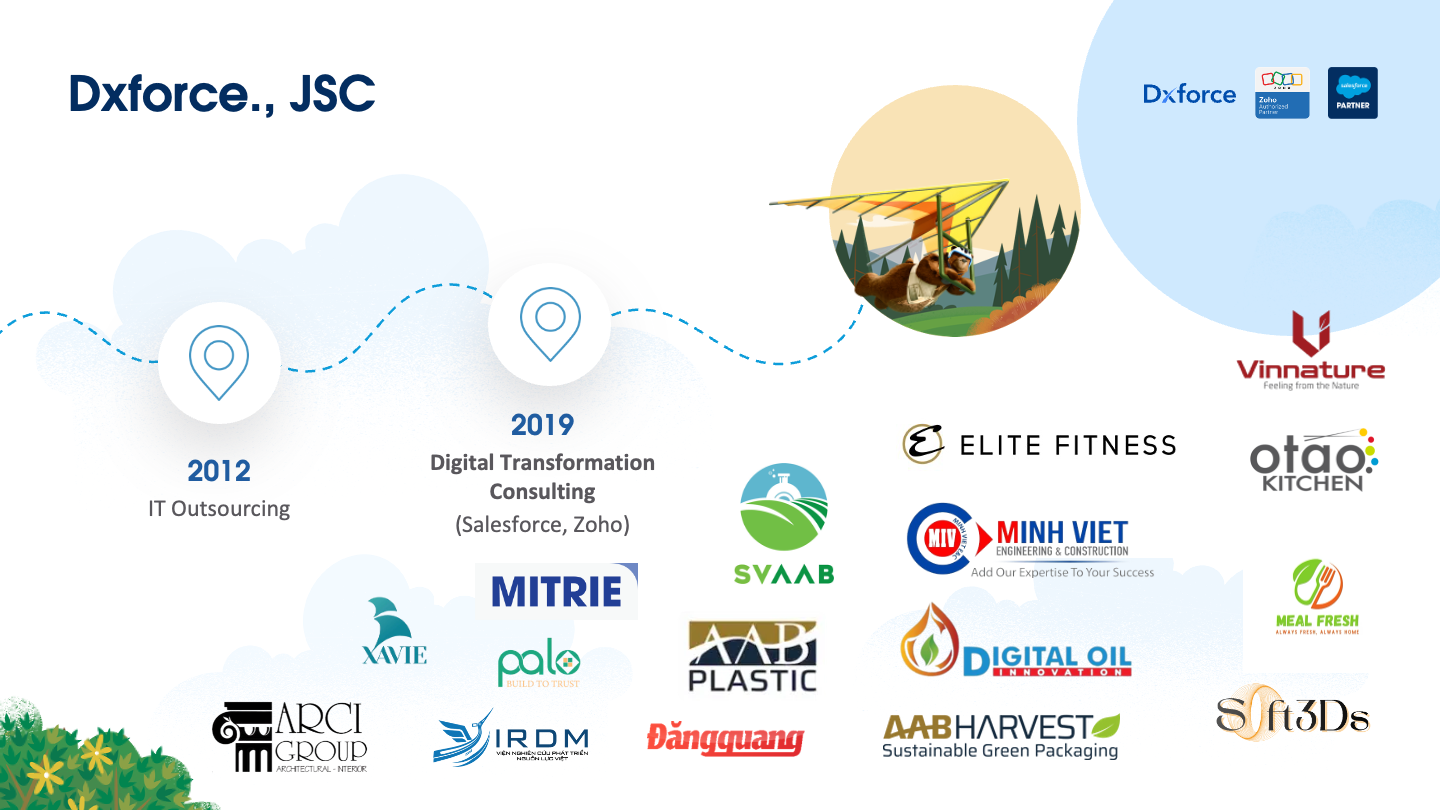 About Dxforce., JSC 12+ Experiences##150+ Projects completed##Dxforce is one of the leading CRM implementation consulting firms in Vietnam. We partner with Zoho and Salesforce to deliver innovative solutions to transform businesses and enhance efficiency.