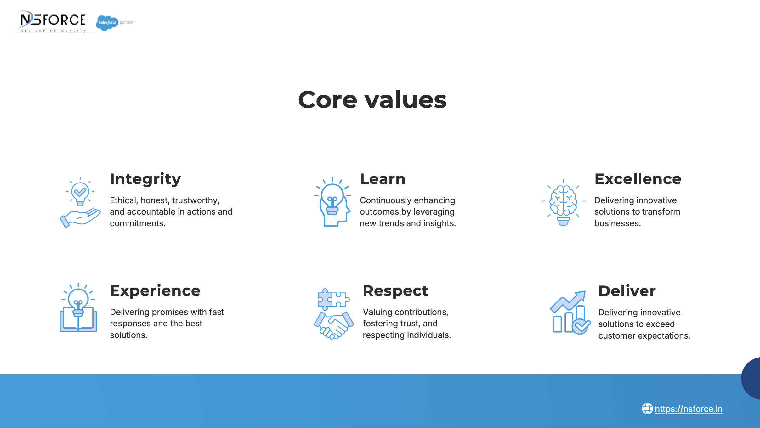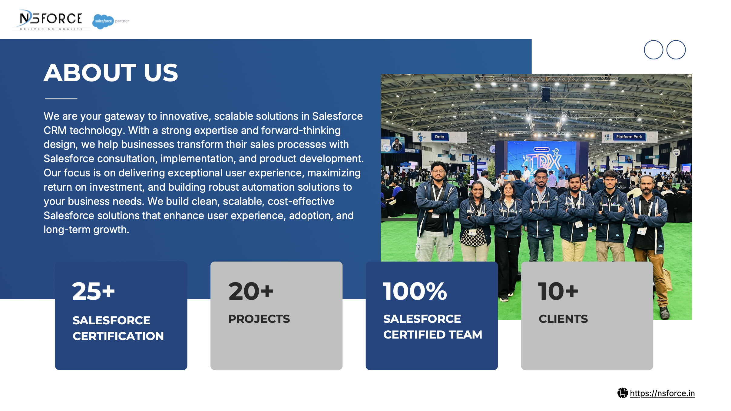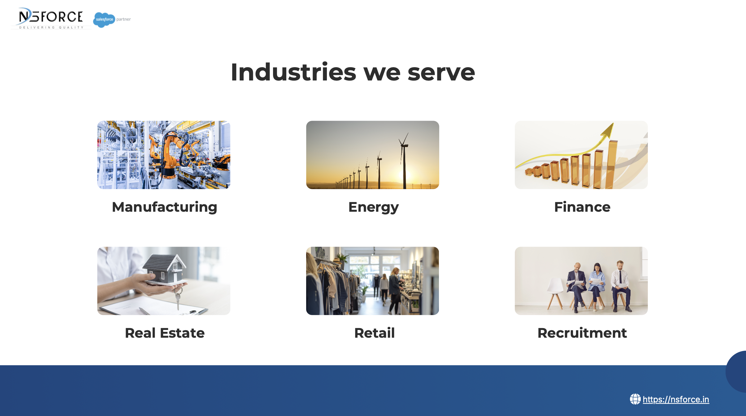 Nsforce specialize in Salesforce implementation, customization, and optimization using an agile delivery model for faster time-to-value. Our team partners with clients to align Salesforce solutions with business goals, driving adoption and ROI.