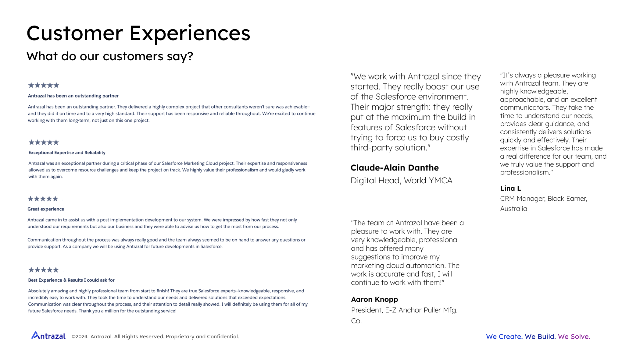 About Antrazal Solutions Private Limited We're a Salesforce consulting company delivering exceptional Salesforce services worldwide. With global expertise and a team of experts, Antrazal assists businesses of all sizes to streamline their business processes in the most sophisticated and seamless way.####At Antrazal, we provide the best Salesforce implementation, consulting, development, integration and managed services according to the latest releases and updates in Salesforce products. We focus on delivering high-quality solutions in the least possible time that boosts the digital transformation of an organisation by 5 times. We have a vibrant team of 25+ certified Salesforce experts which includes developers, architects, consultants and administrators carrying the experience of successfully completing more than 500+ projects and handling 150+ clients.
