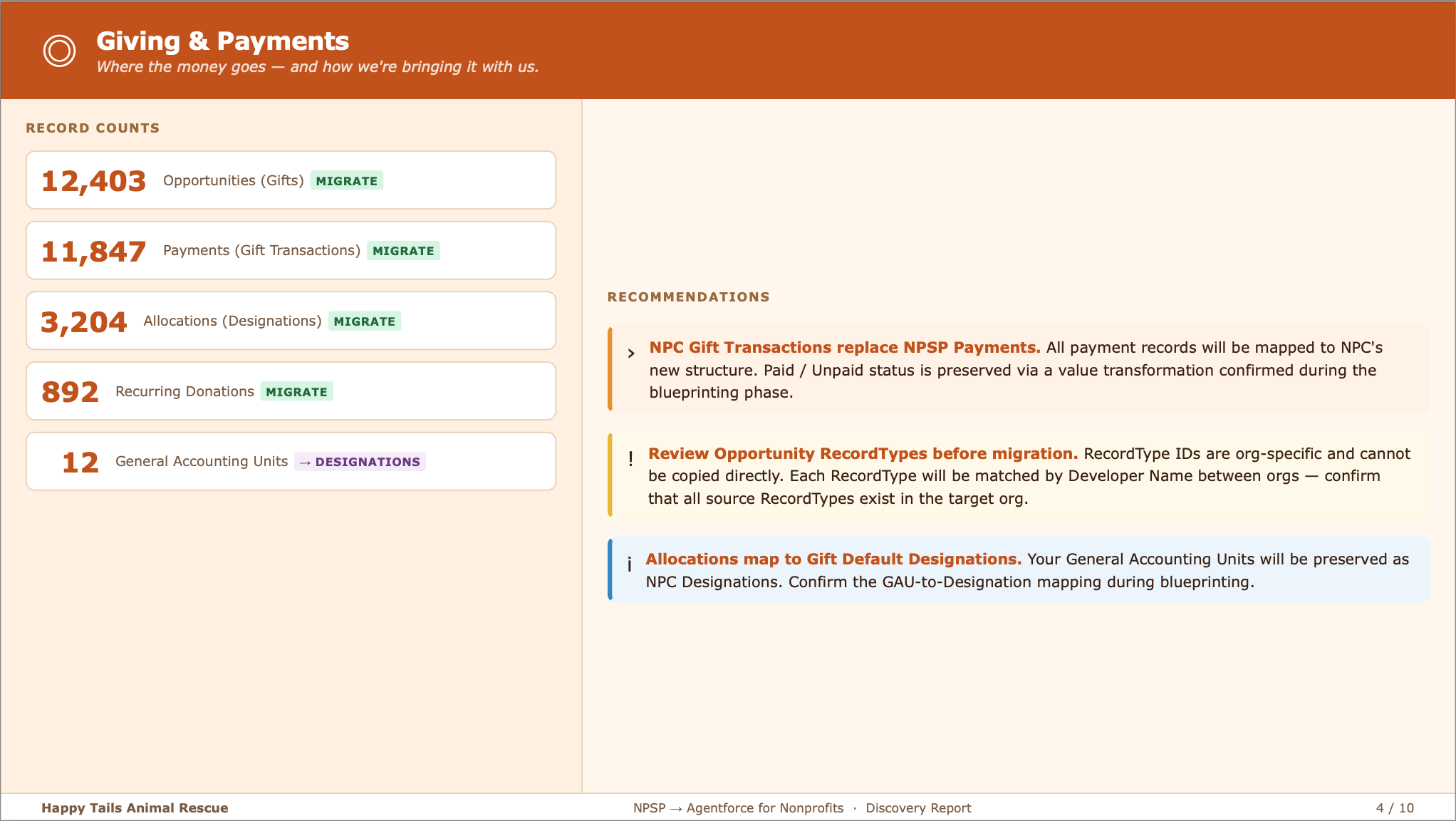 Thinking about migrating from NPSP to Agentforce Nonprofit? We will provide a comprehensive diagnostic to assess your readiness, outline the scope, and highlight key decisions, issues and risks. An invaluable resource, free of charge, with no obligation.