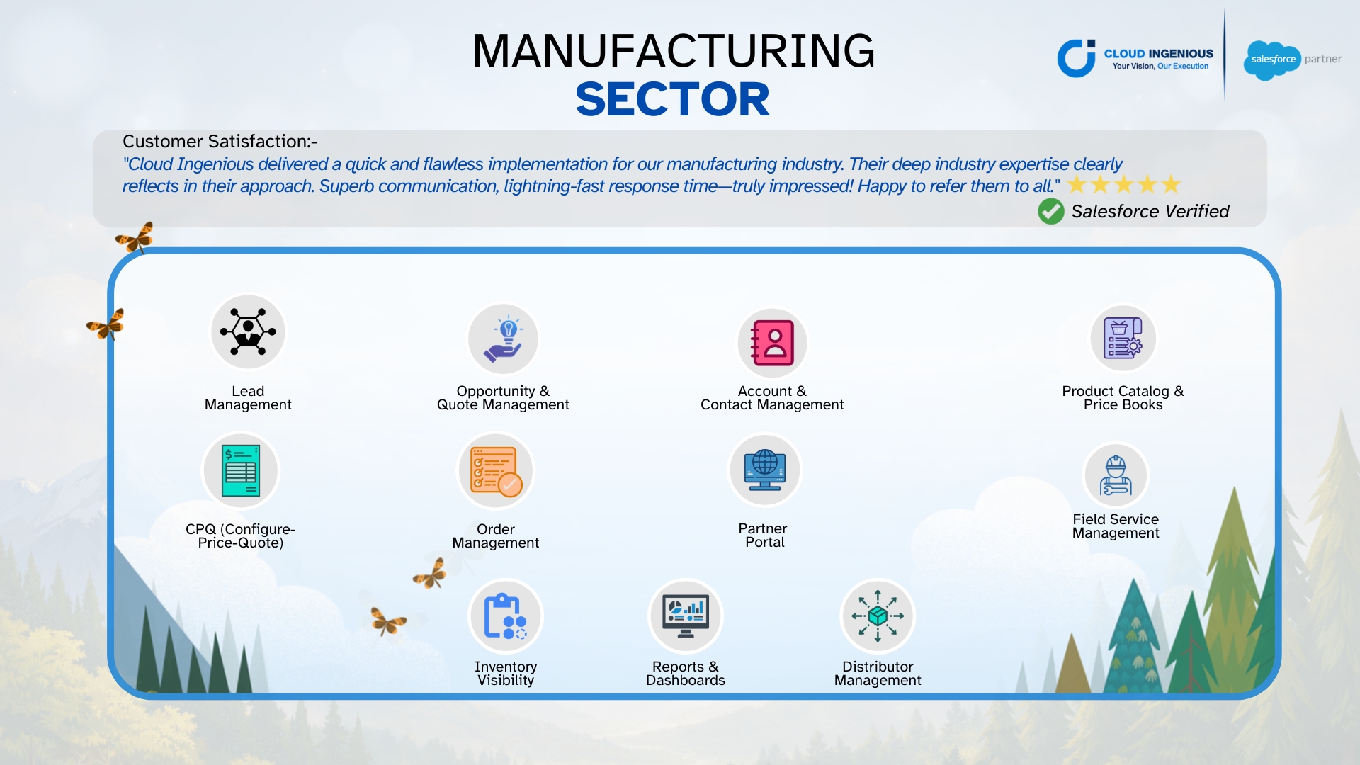 About Cloud Ingenious We are a leading Salesforce consulting firm specializing in providing top-tier consulting services across the entire Salesforce technology stack. We are passionate about empowering businesses to achieve their goals by strategically implementing and optimizing Salesforce solutions.####Why Choose Us?####Your Vision, Our Execution: We take your vision and turn it into reality with our proven track record and expertise in Salesforce.####Unparalleled Growth & ROI: Our team of certified consultants delivers tailored solutions that maximize your return on investment and drive unparalleled business growth.####Seamless Integration: We go beyond basic implementation, specializing in seamless integrations, API development, and native Salesforce tools to ensure your systems work together flawlessly.####Our Values:##Partnership: We believe in building strong, collaborative partnerships with our clients.##Excellence: We are dedicated to delivering exceptional service and exceeding expectations.##Innovation: We are constantly seeking new and innovative ways to help our clients achieve success.##Client Success: Your success is our ultimate goal.####We're not just consultants—We're your partners in growth.