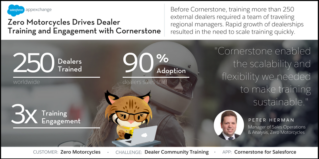 Zero Motorcycles trains 250 dealers with Cornerstone for Salesforce. Get the app >>