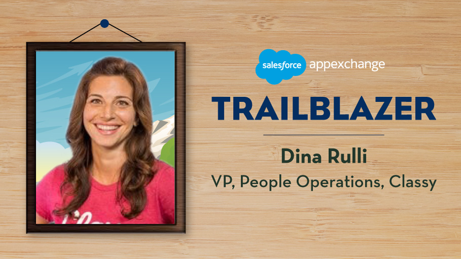 Dina Rulli is VP of People Operations at Classy. Classy may serve nonprofits with product, but Dina and the organization serve nonprofits in many other ways, too. More than the day to day, Dina tackles awe-inspiring initiatives, such as funding nonprofits and providing programs to employees to support those in need around the world. “It's the experience where Classy can launch products, support employees on volunteer trips, raise money, all while speaking to our mission and the core of who we are,” shares Dina in an interview with Holly Rushton of AppExchange. Bringing these personal experiences and growth opportunities to life for her staff is why Dina is a trailblazing partner. Let’s learn more about Dina’s journey in this interview.
