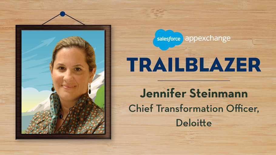Jennifer Steinmann has a way of taking her passions and turning them into opportunities. With a knack for developing long-term client relationships and building strong teams while at Deloitte, Jennifer founded initiatives dedicated to hiring and developing young talent, leading her to become Chief Talent Officer and most recently Chief Transformation Officer (CTO). She was also a key player in founding the Salesforce Pathfinder Training Program, a joint program with Deloitte and first-of-its-kind workforce development program that provides participants from diverse backgrounds with technical skills and business training. It’s safe to say that as CTO she has not only made a transformational impact at her organization, but also in the lives of others – employees and the community. Read on to learn more about Jennifer in this trailblazing partner interview.