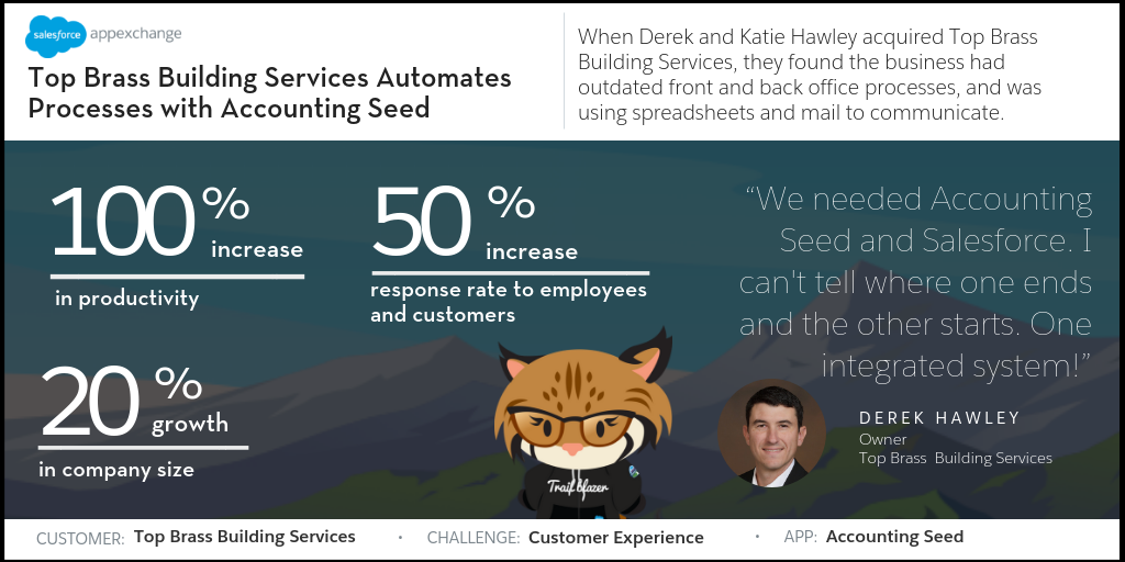 Top Brass Building Services increases customer and employee response rate by 50% with Accounting Seed. Get the app >>
