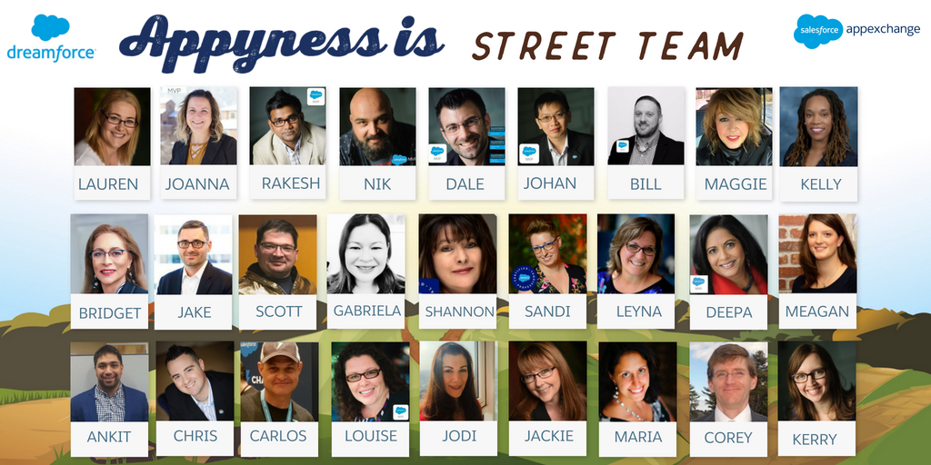 Meet the Appyness Street Team at Dreamforce, including Salesforce MVPs, AppExchange All Stars and amazing partners. The street team includes: