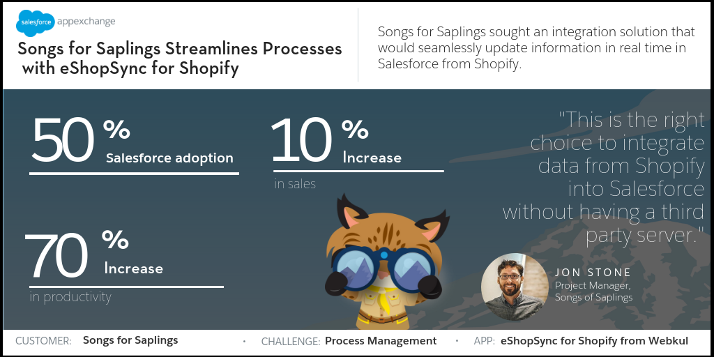 Learn how Songs for Saplings increased productivity 70% with eShopSync for Shopify by Webkul. Get the app>>