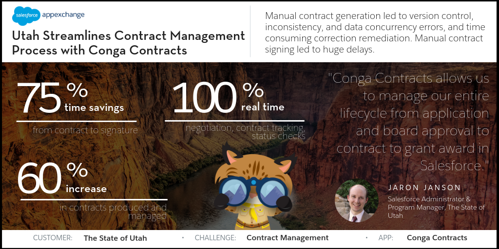 The State of Utah saves 75% more time from contract to signature by working with Conga Contracts. Get the app >>
