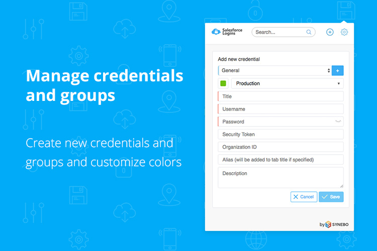 IT ManagementBest in class solution to manage your credentials. Completely free.##Allows you to login to multiple orgs, supports an omnibox login and tabs customization.##Say “good bye” to verification codes!