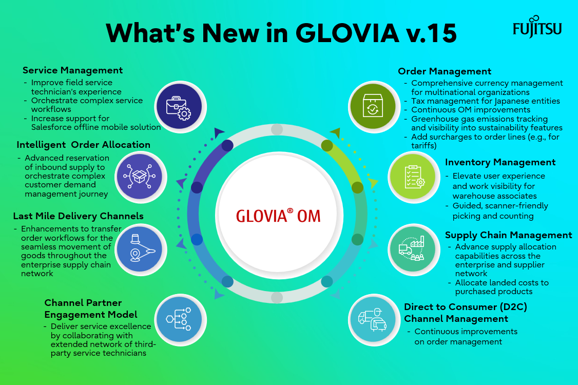 Enterprise Resource PlanningGLOVIA provides flexible solutions for businesses: omnichannel order management, real-time inventory management & visibility, intelligent order routing & fulfillment, AI-powered planning & forecasting, and equipment, asset & field service management.