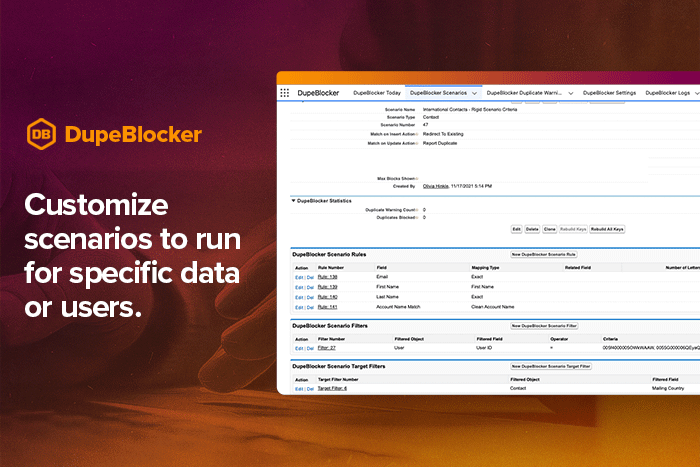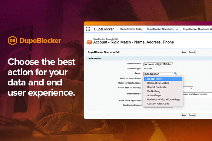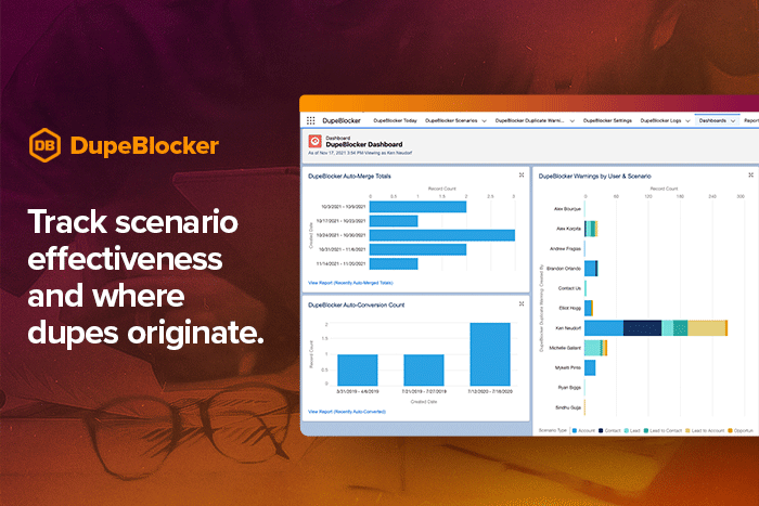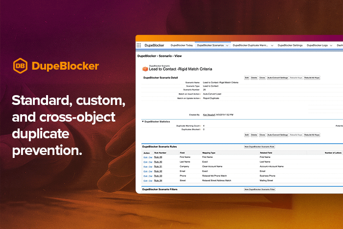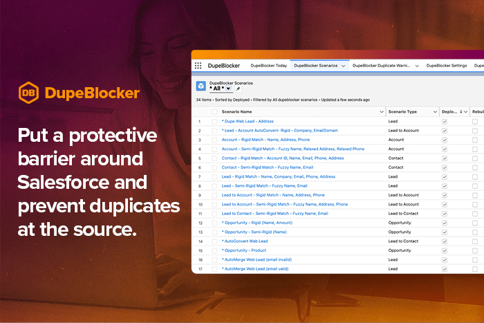 Data CleansingDupeBlocker puts a protective barrier around your Salesforce org that prevents duplicates at the source.