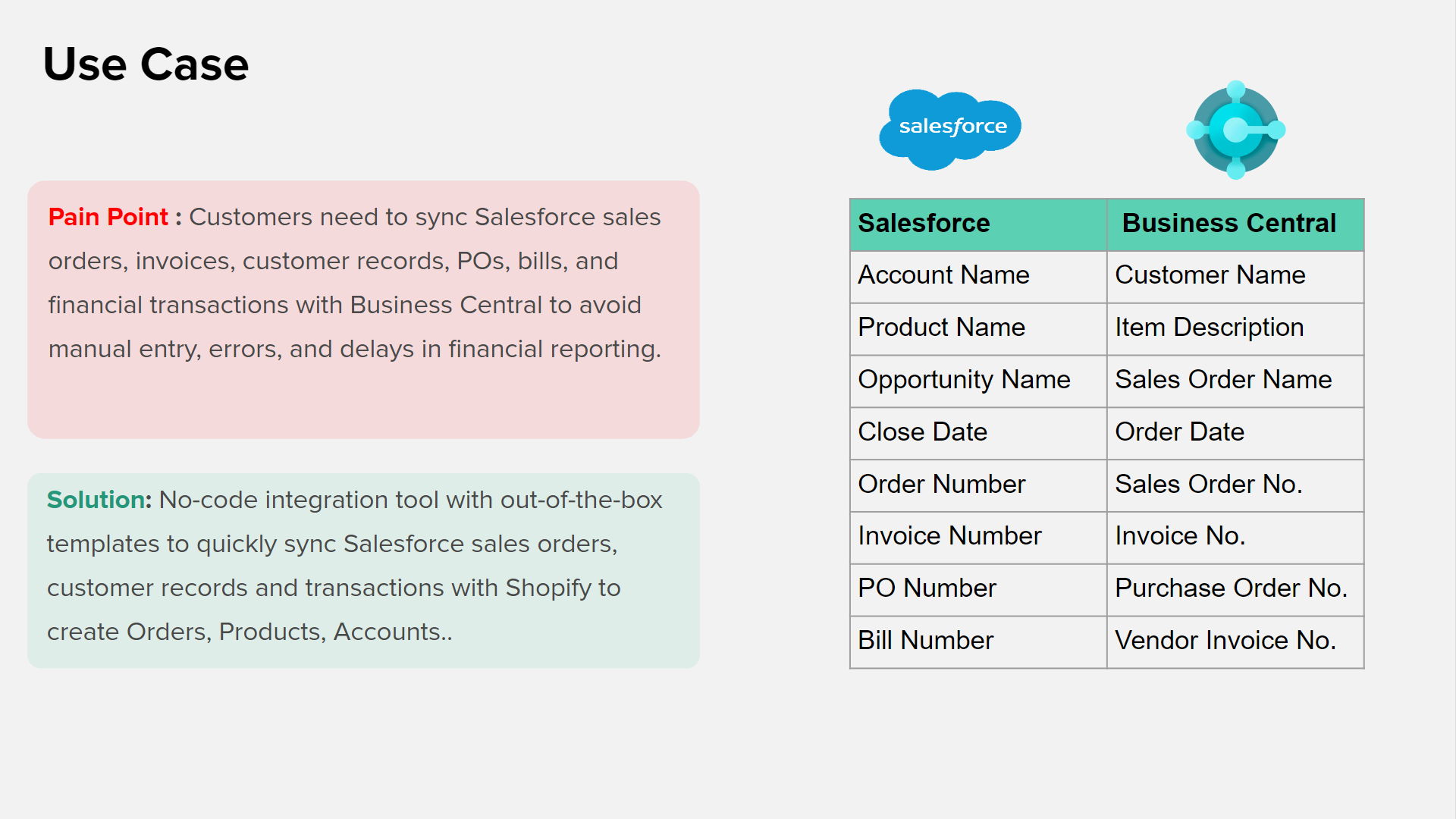 IntegrationPlease Note: **Use this limited solution for free; for increased usage and features##Automate invoicing, order processing, and customer data synchronization between Salesforce and Microsoft Dynamics 365 ERP, including Business Central,Dynamics GP and more.