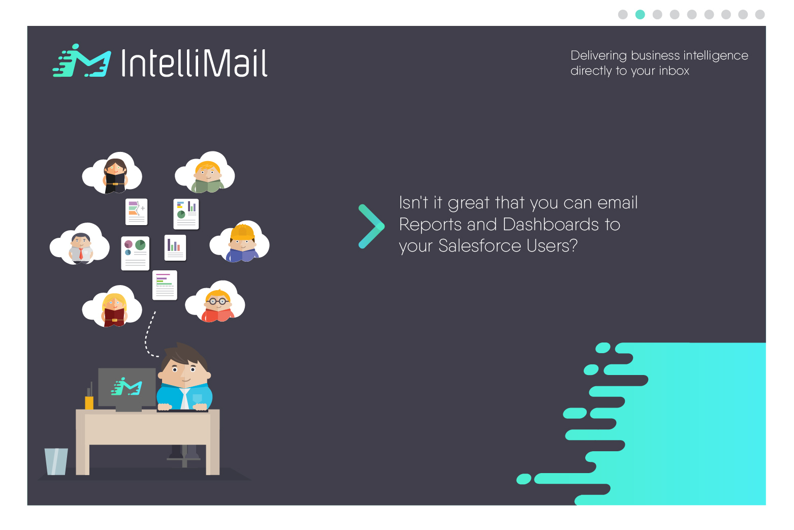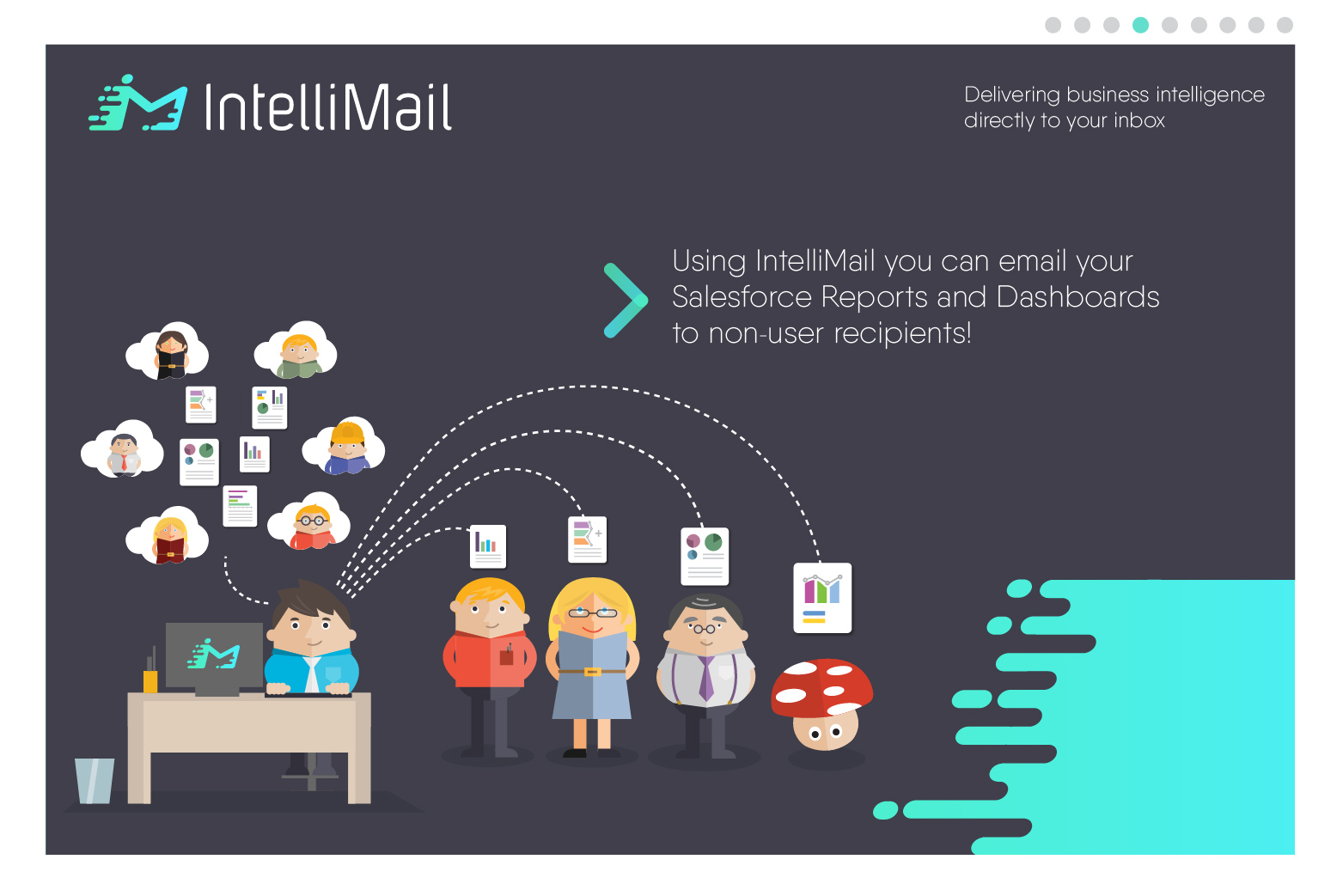 ProductivityIntelliMail lets you email Dashboards and Reports to non-Salesforce.com users.####Keep staff, board members and stakeholders up to speed with your business' key performance indicators.####It delivers business intelligence direct to yor inbox!