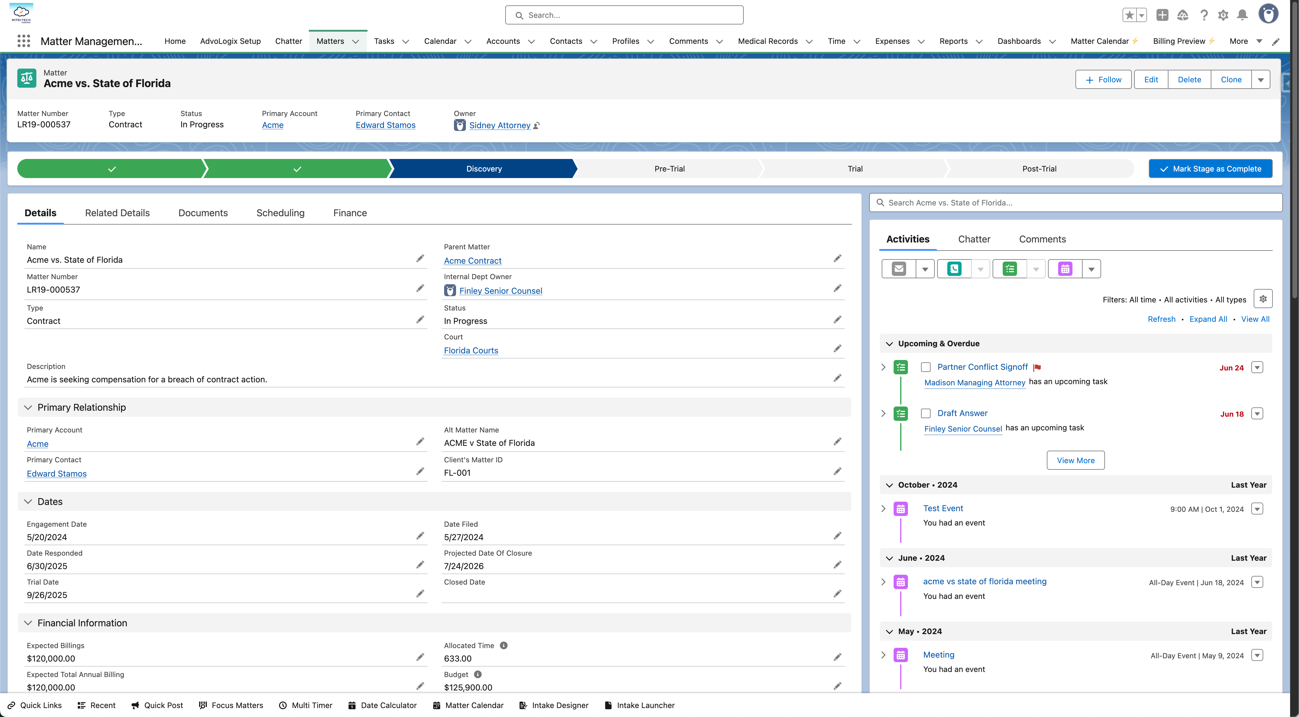 Project ManagementLegal case and matter management software that conforms to unique workflows and organizational practice standards, while providing industry-leading security and reliability.