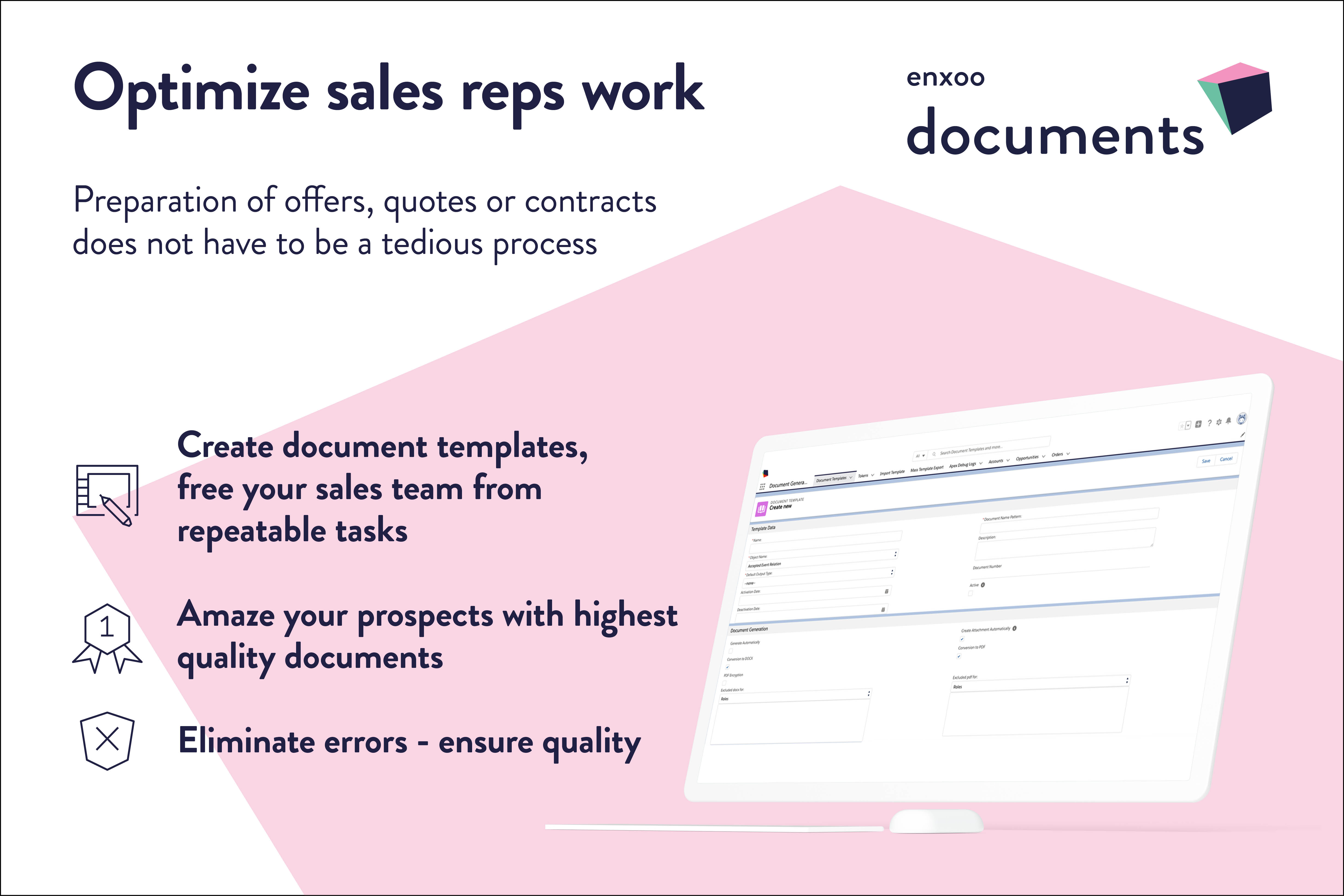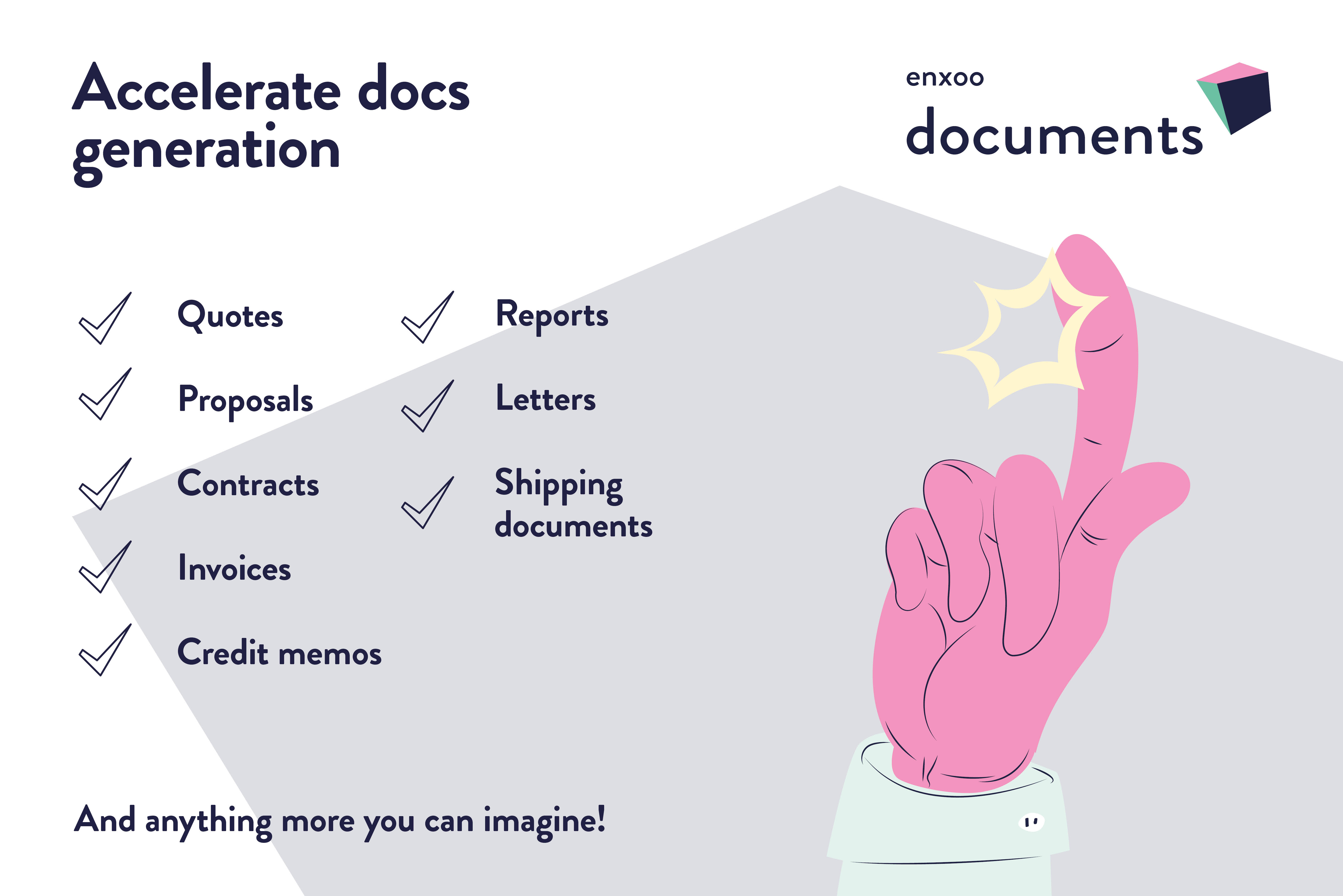 Document GenerationDocuments are an inseparable part of a business operation. Regardless of whether you create proposals, invoices, or orders, you expect quality and consistency. Easy in use, Enxoo Documents provides you with the flexibility to create any document quickly.