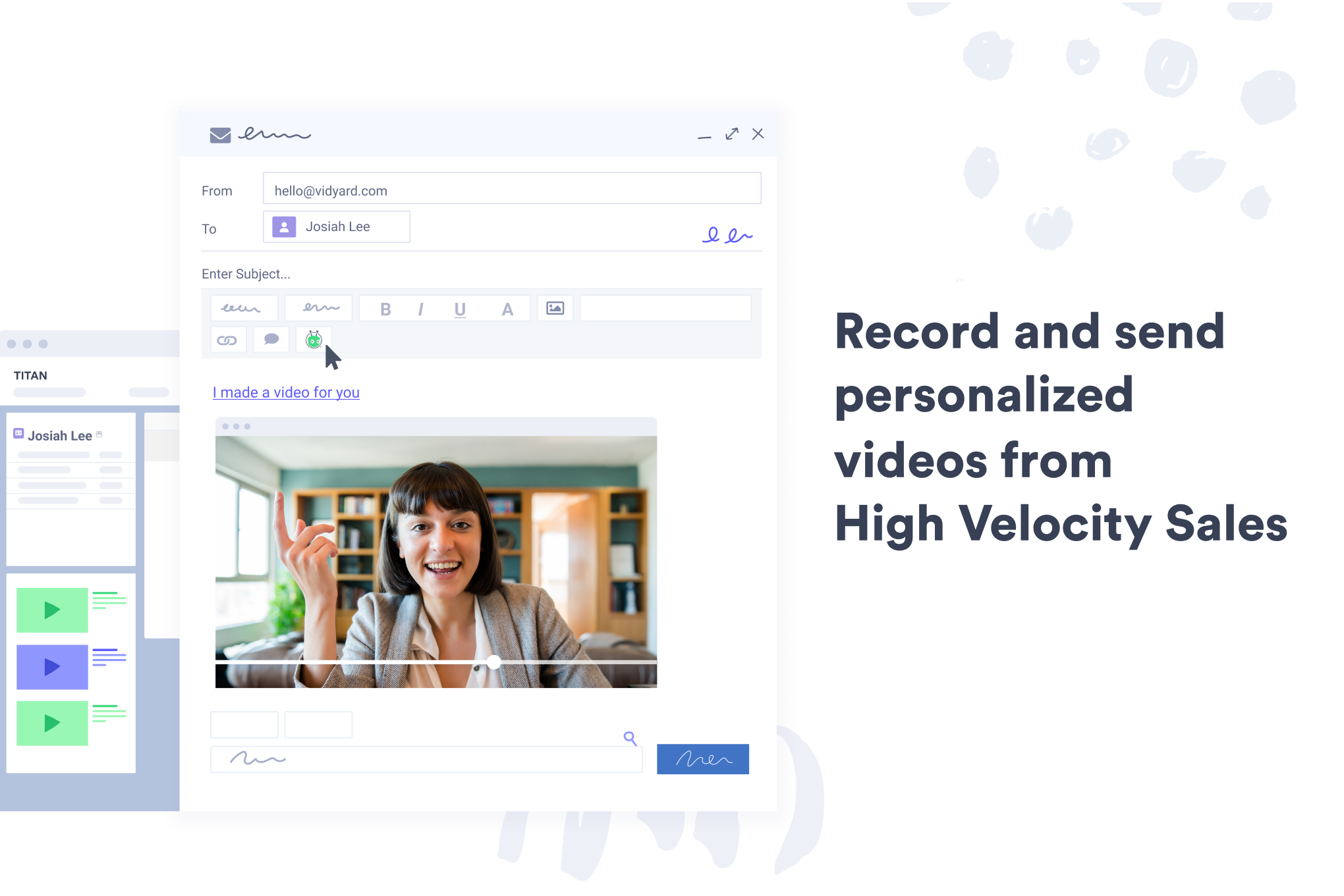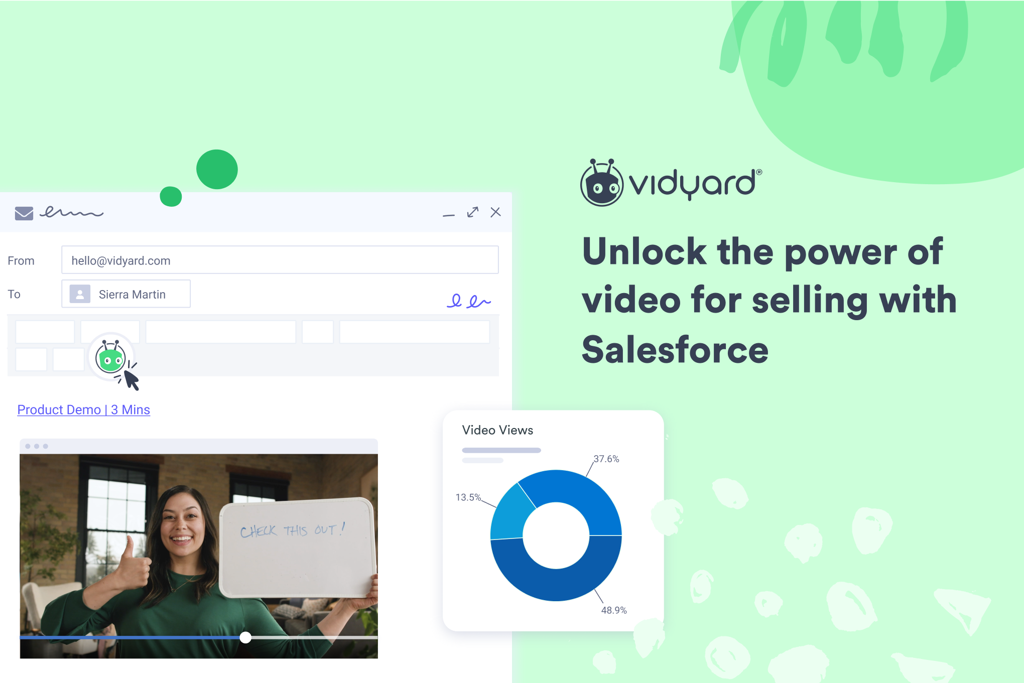 SalesConnect and close more deals with Vidyard's AI-powered video capabilities in Salesforce. Scale personalized video outreach, record and send videos, and track views to boost rep performance and ROI