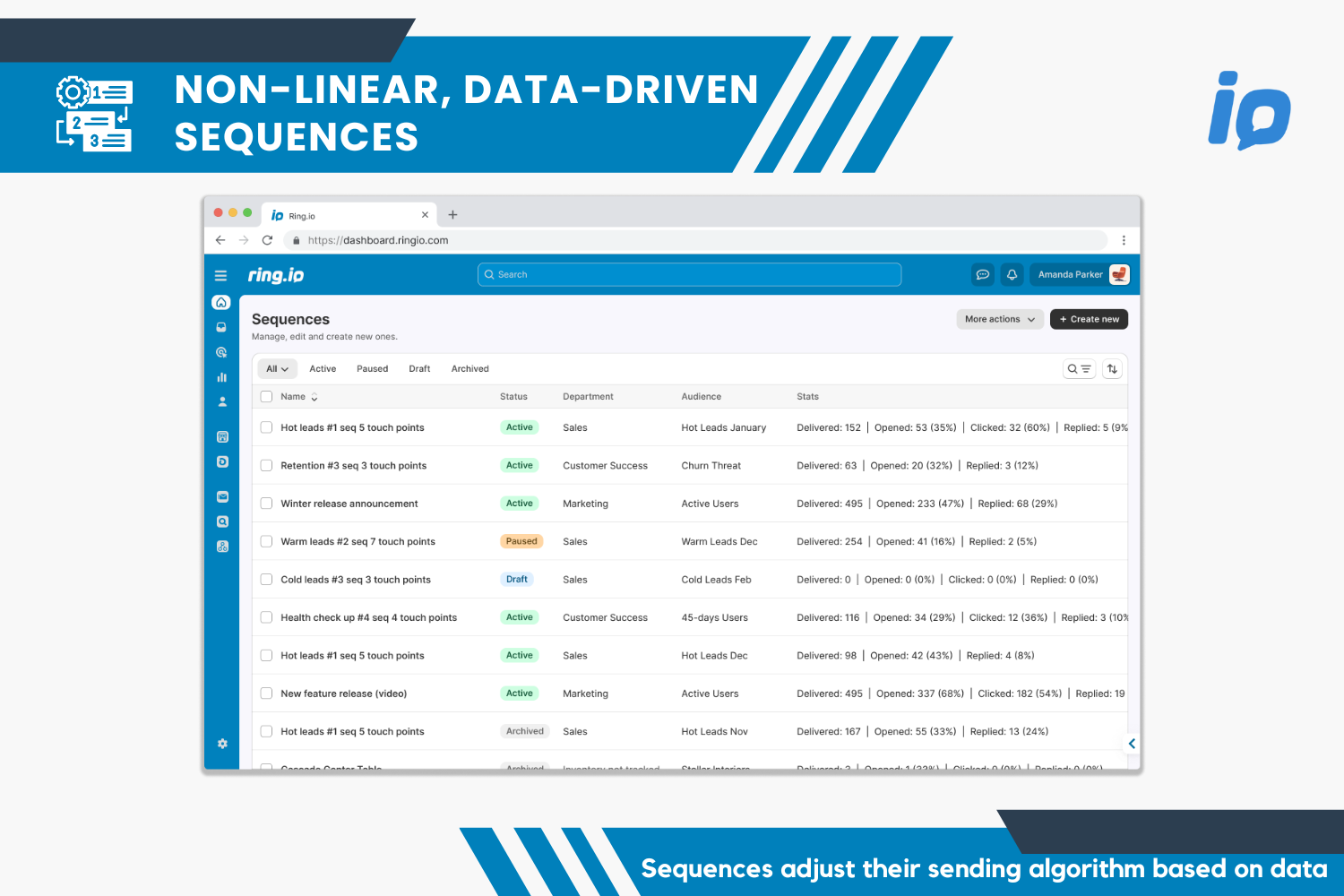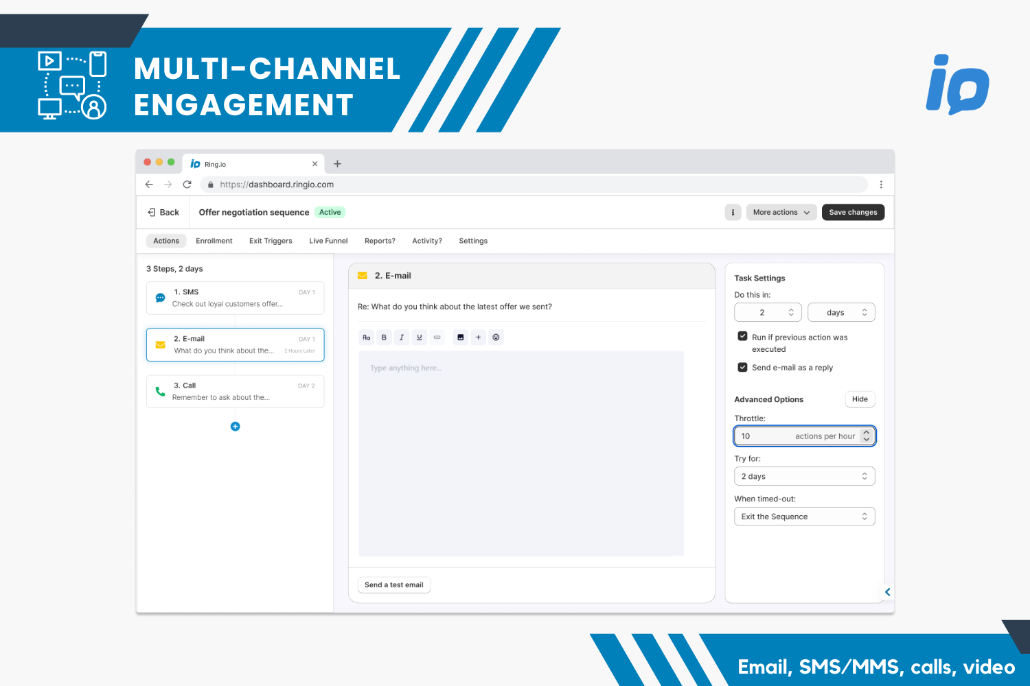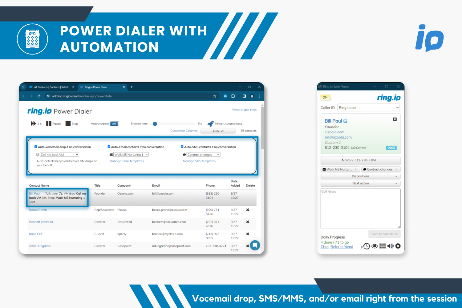 Telephony✔️ Multi-channel sales engagement##✔️ Data-driven sequences##✔️ Power Dialer (texts, email, voicemail drop)##✔️ Auto data-logging and call recording##✔️ Coaching: eavesdrop, call whisper, live monitor##✔️ Local area codes, bulletproof Caller ID, SPAM detection